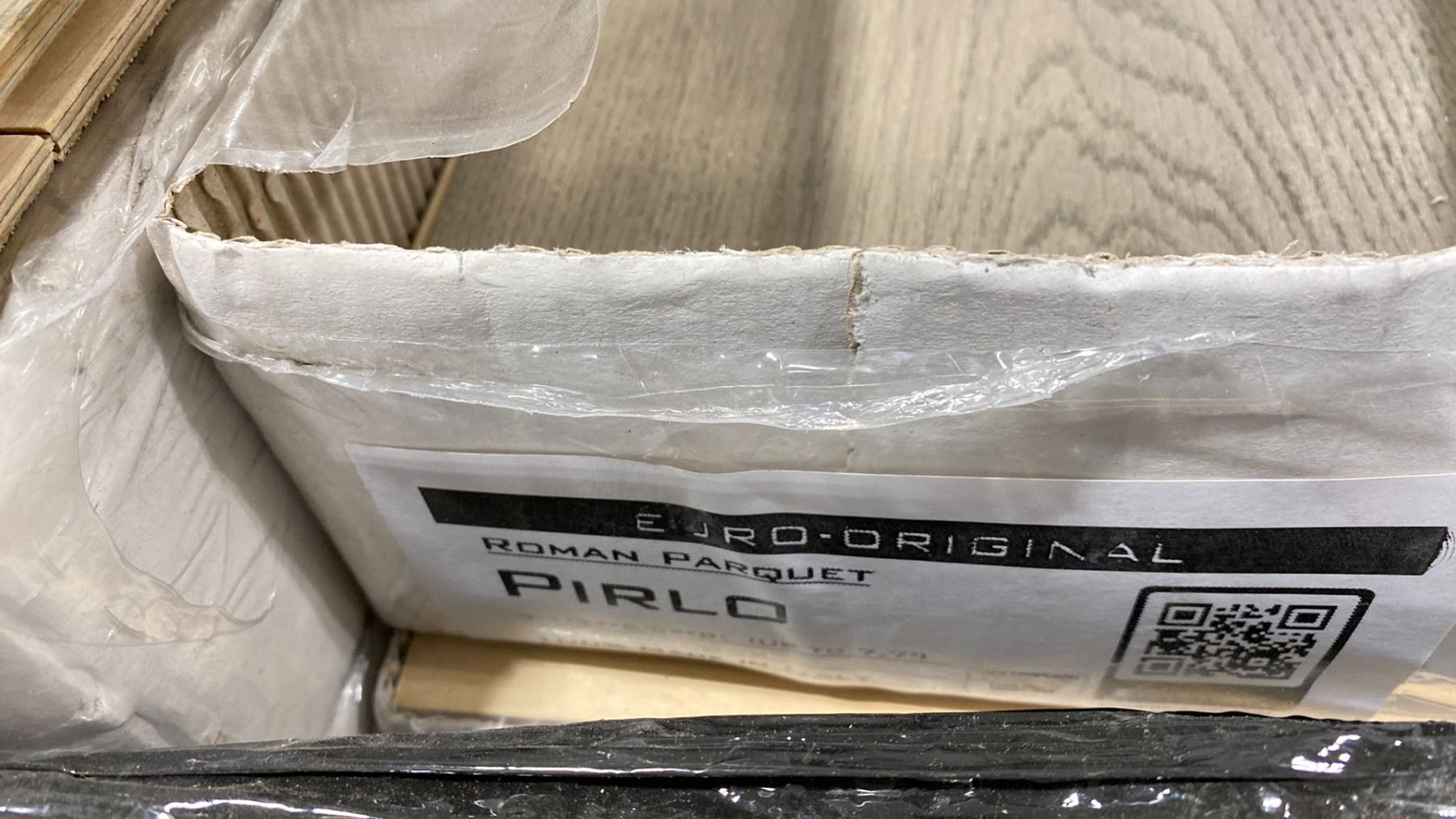 1,456.5SQ FT OF EURO ORIGINAL ROMAN PARQUET PERLO, ENGINEERED REAL WOOD FLOORING, 29.13SQ FT PER BOX, 50 BOXES, 1456.5SQ FT TOTAL *MUST TAKE ALL ON PALLET*