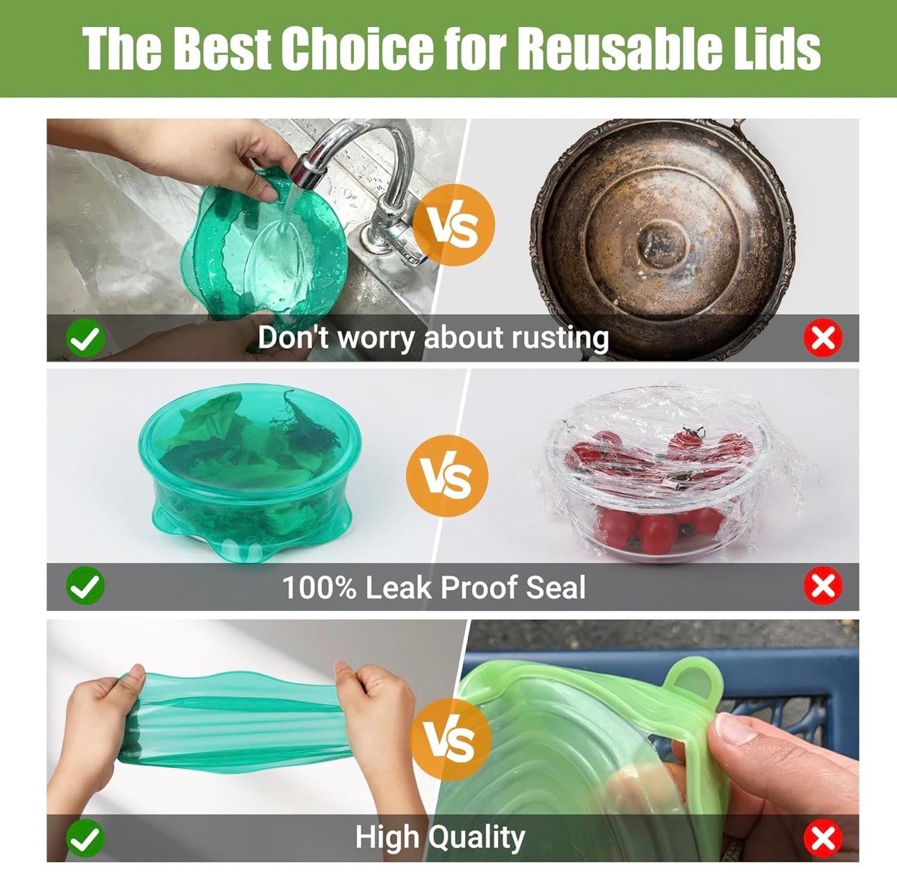 1 6-Pack of Colourful Silicone Stretch Food Storage Lids - 6 Various Sizes - New