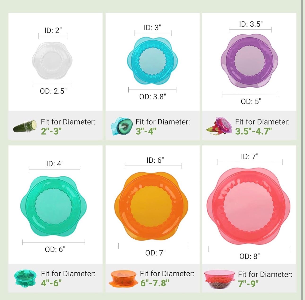 1 6-Pack of Colourful Silicone Stretch Food Storage Lids - 6 Various Sizes - New