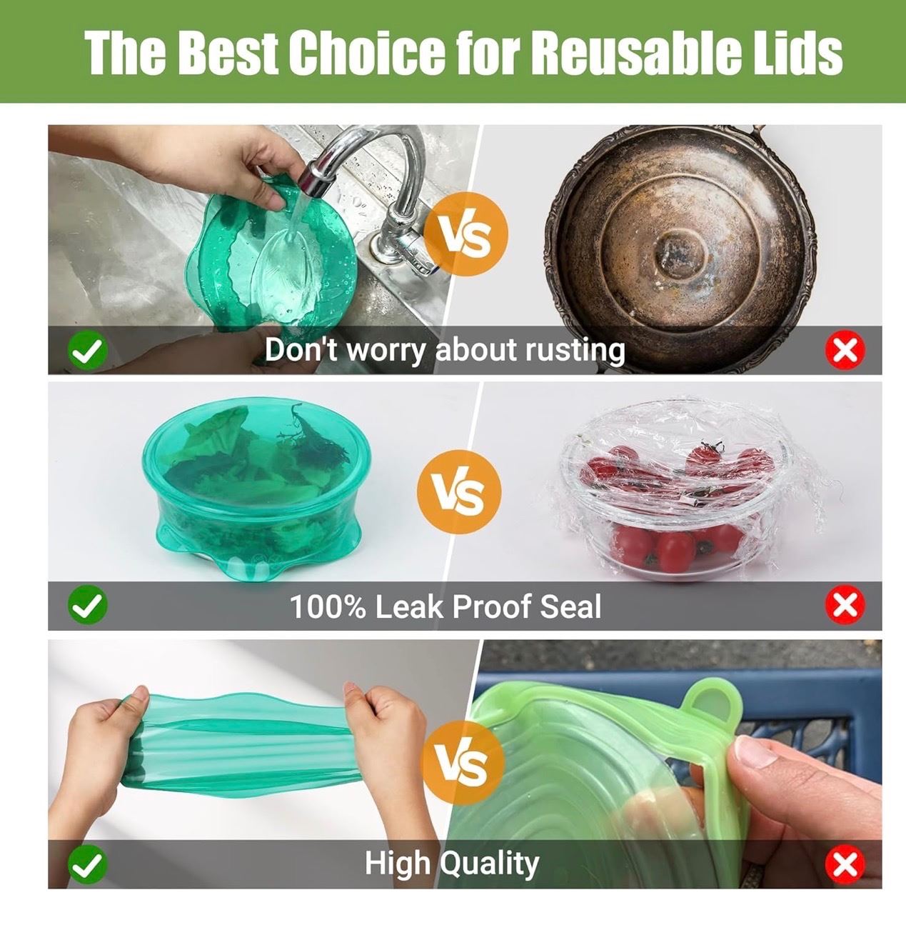 1 6-Pack of Colourful Silicone Stretch Food Storage Lids - 6 Various Sizes - New