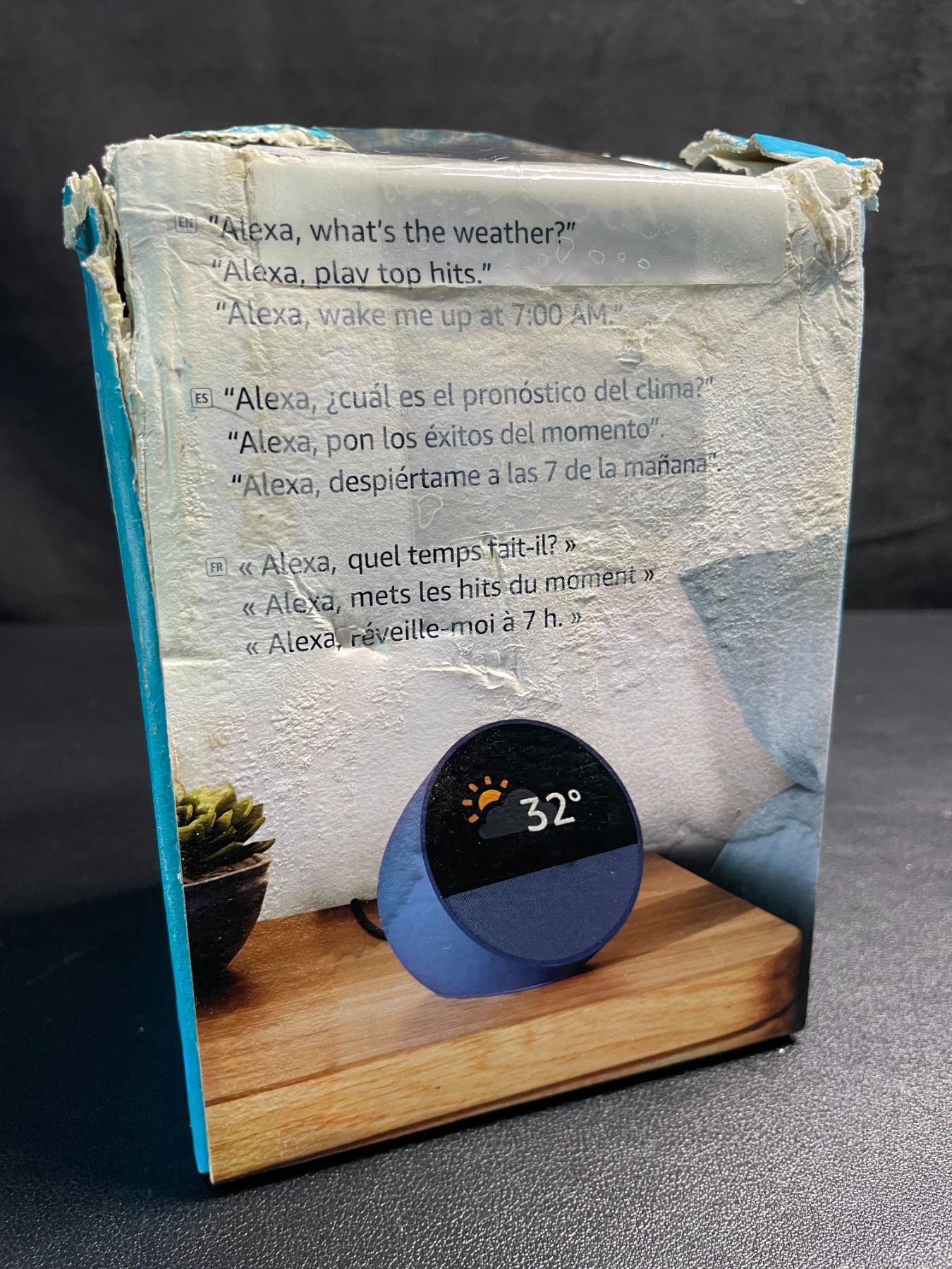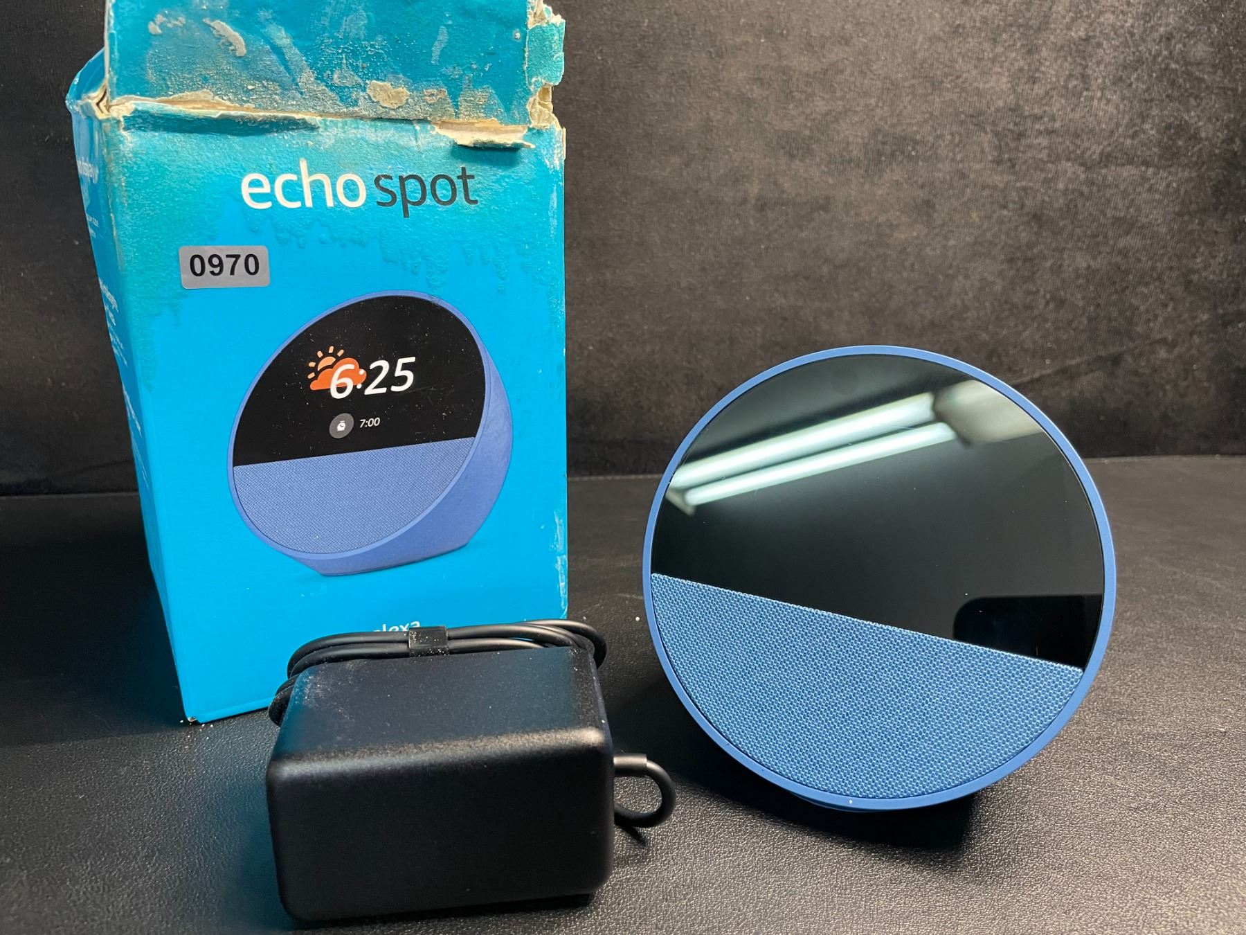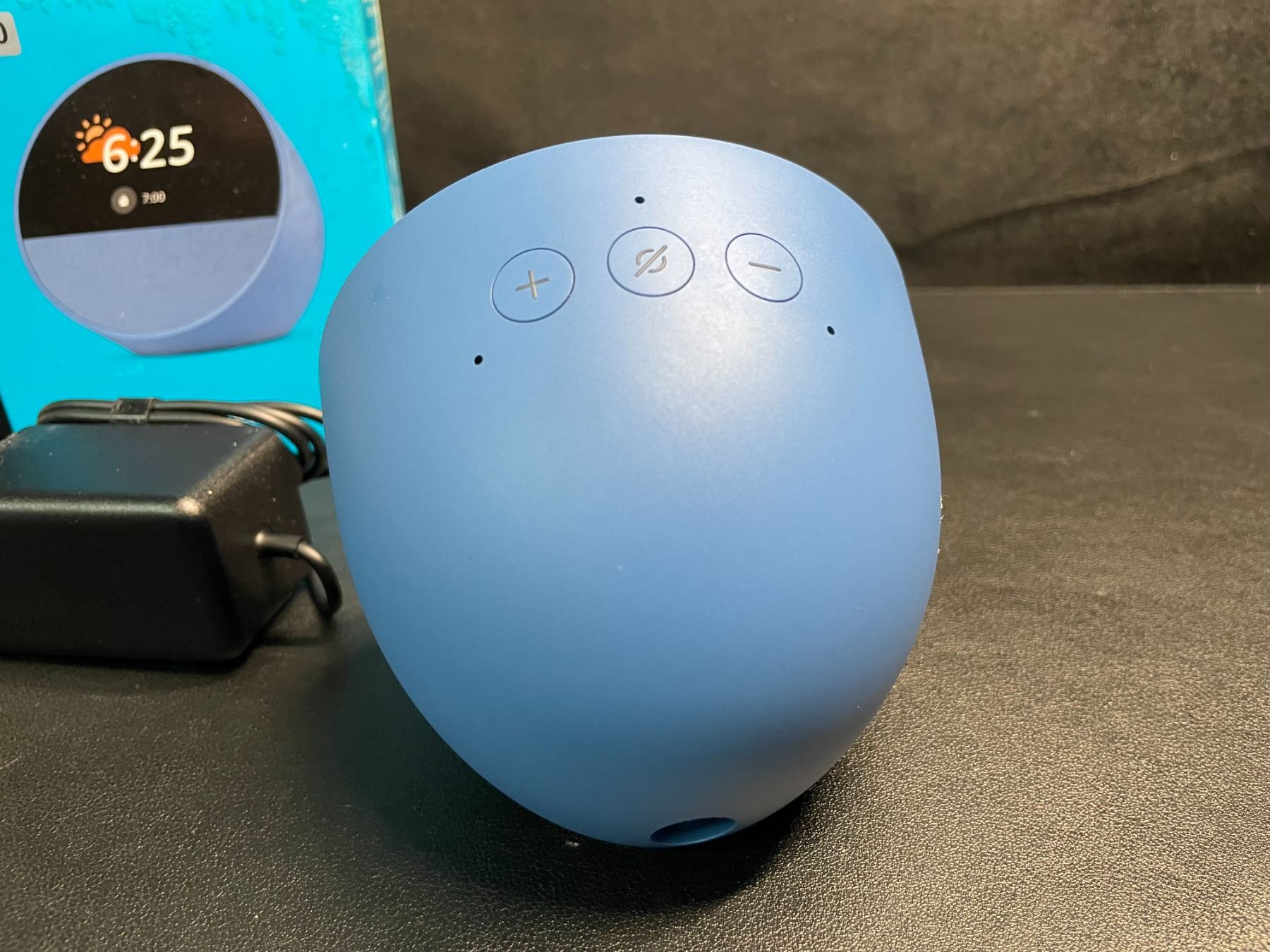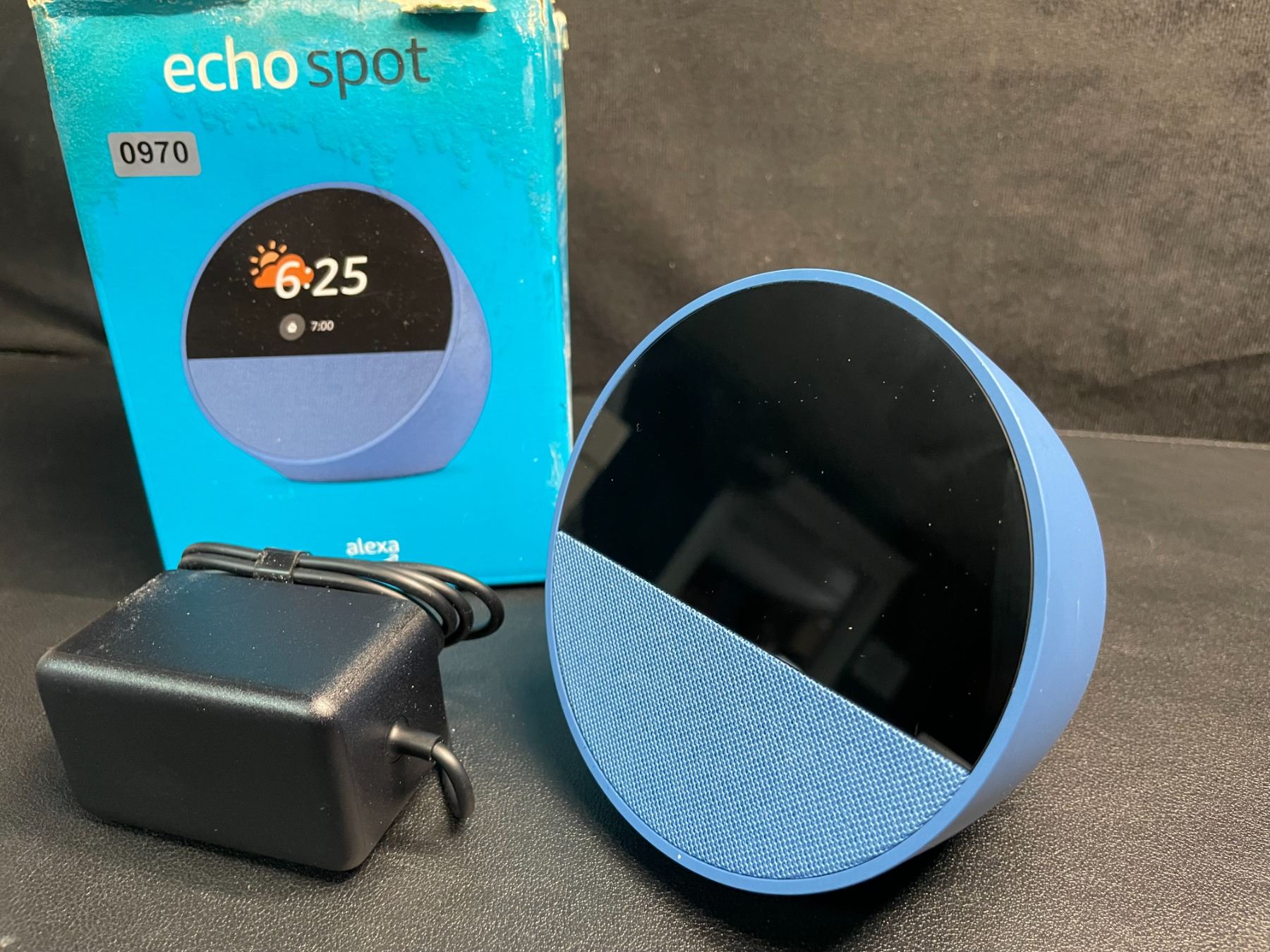 - Amazon Echo Spot; Great for nightstands, offices and kitchens, Smart alarm clock with Alexa, Ocean Blue
