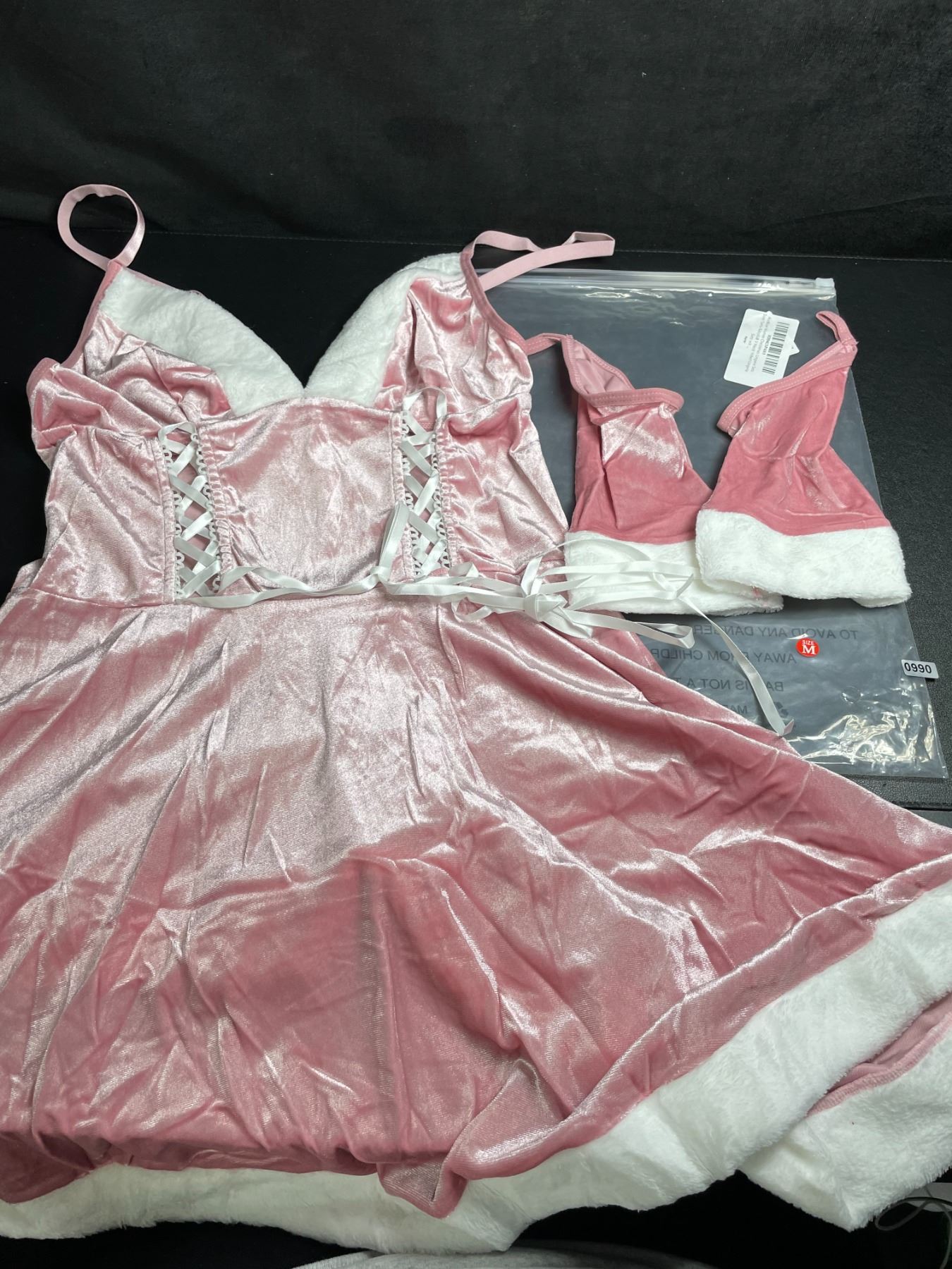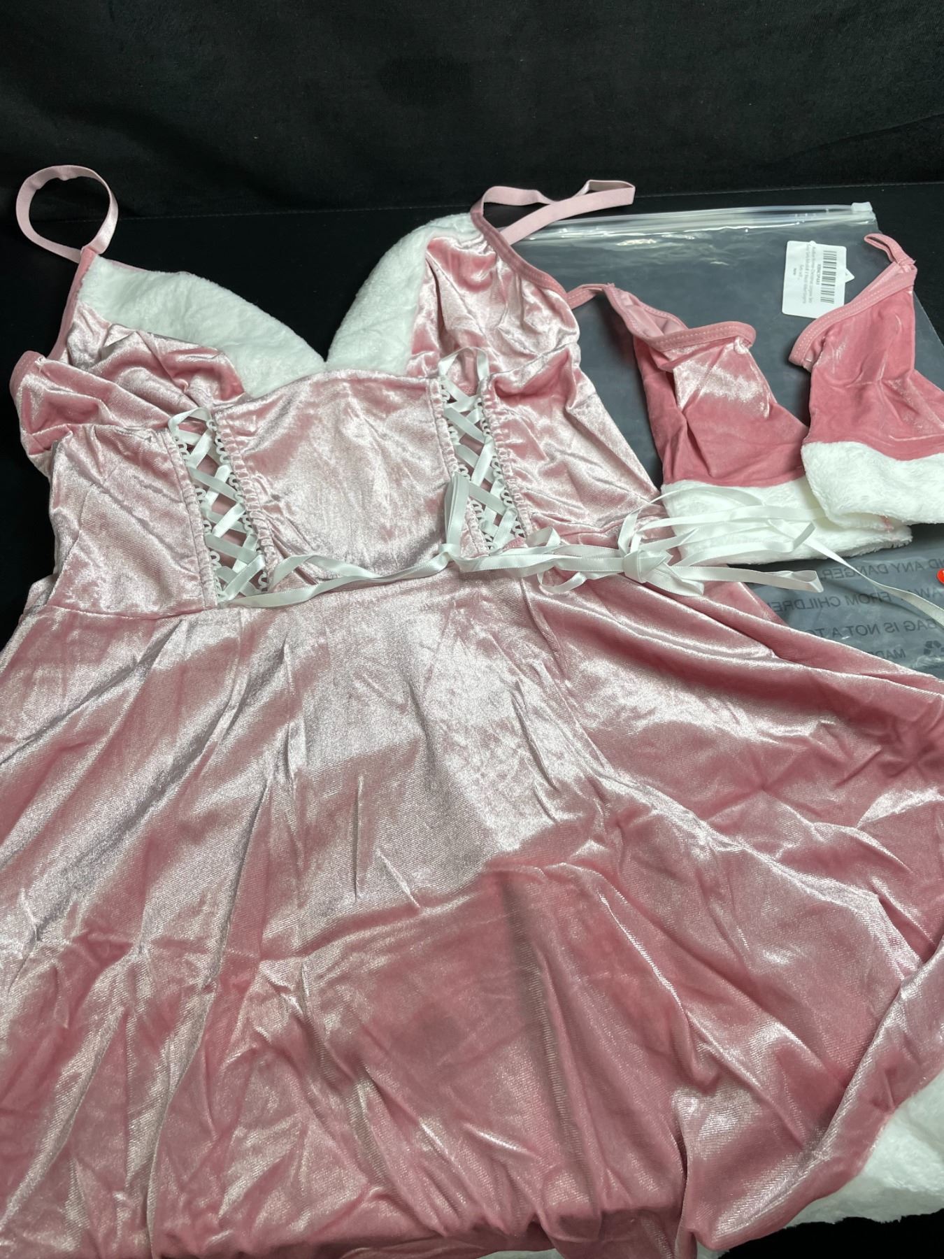 - avidlove women christmas lingerie sexy santa babydoll v neck velvet lingerie sets with fingerless gloves (pink)