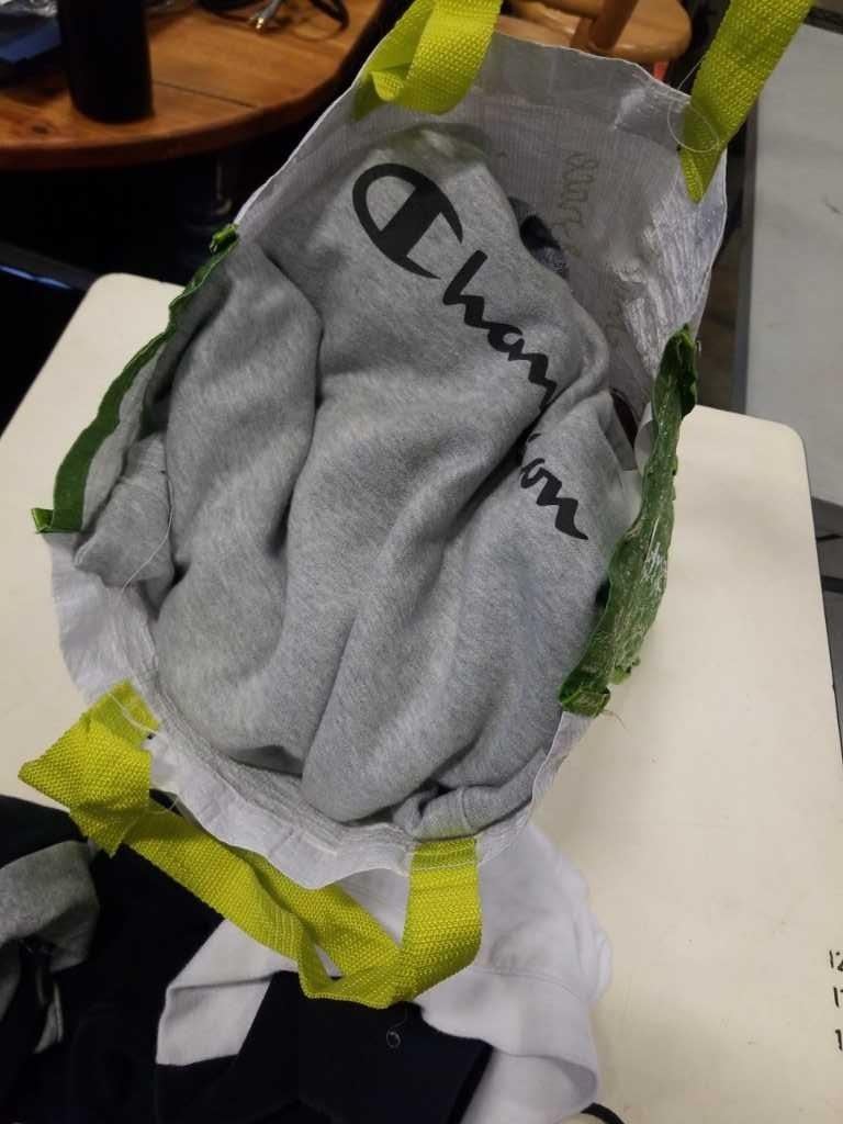 1 BAG OF SIZE LARGE AND SMALL CHAMPION/AMAERICAN EGALE HOODIES AND SWEAT SHIRTS