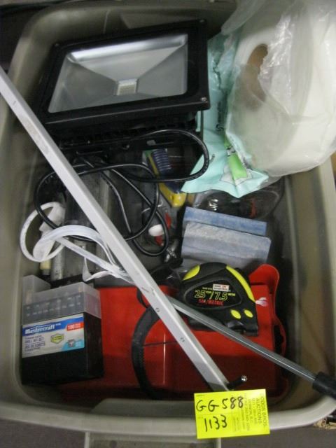 1 BOX OF DRILL BITS, PAINTING SUPPLIES AND LED LIGHT