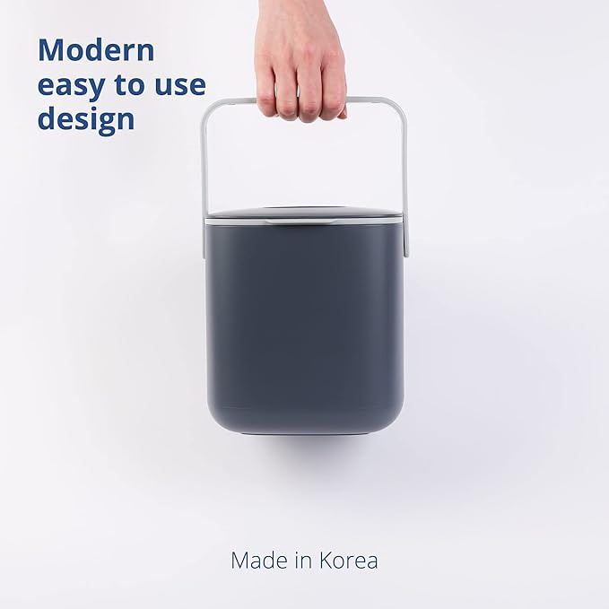 - Blue Ginkgo Kitchen Compost Bin – Small [2.6L / 0.69 GAL] – Filter-Free, Odor-Tight Countertop Food Waste Pail with Handles (Made in Korea, Grey)