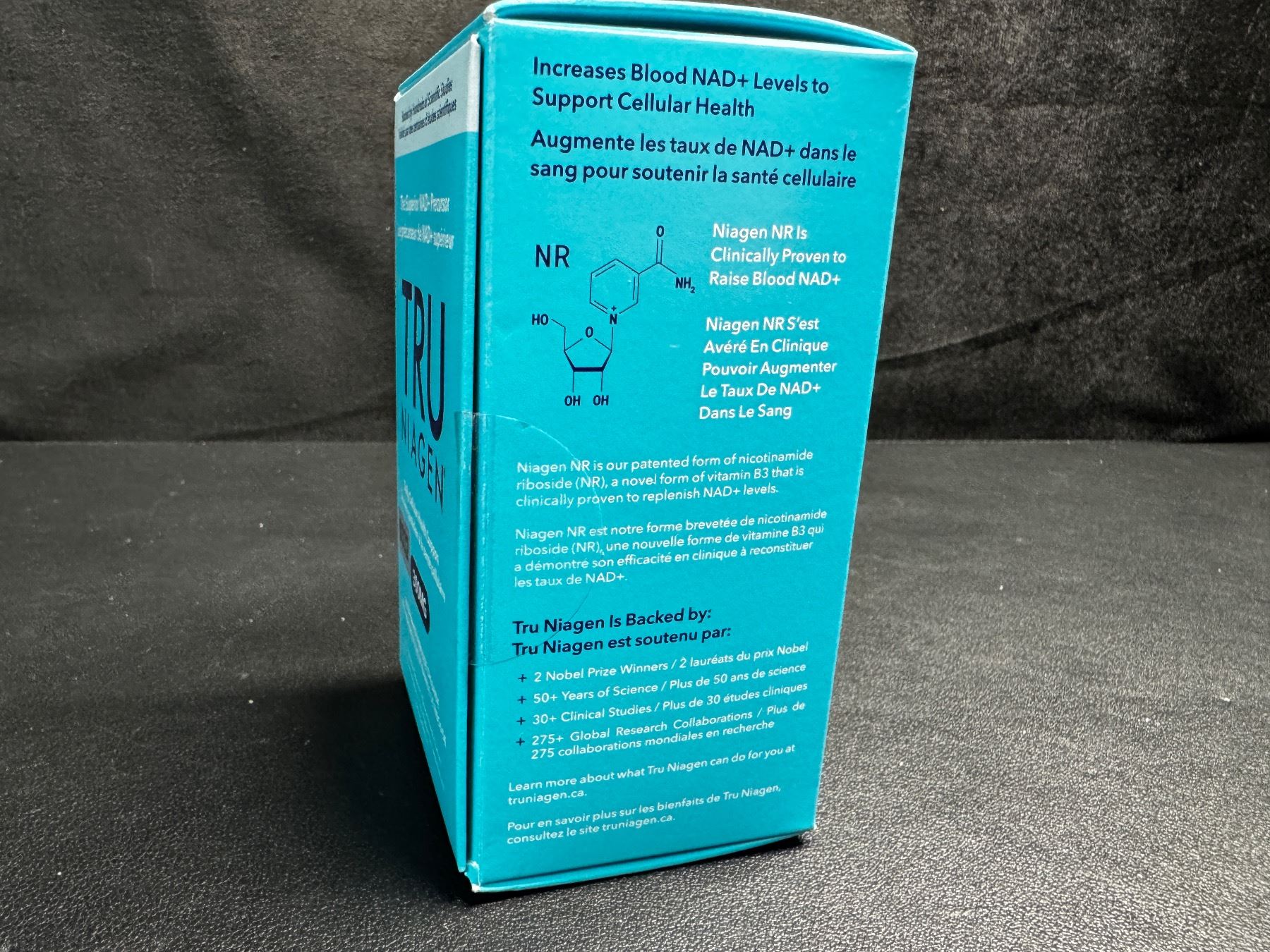 90 capsule bottle of tru niagen cellular support - this bottle retails over $140.00 everywhere online and in stores at health and wellness shops.