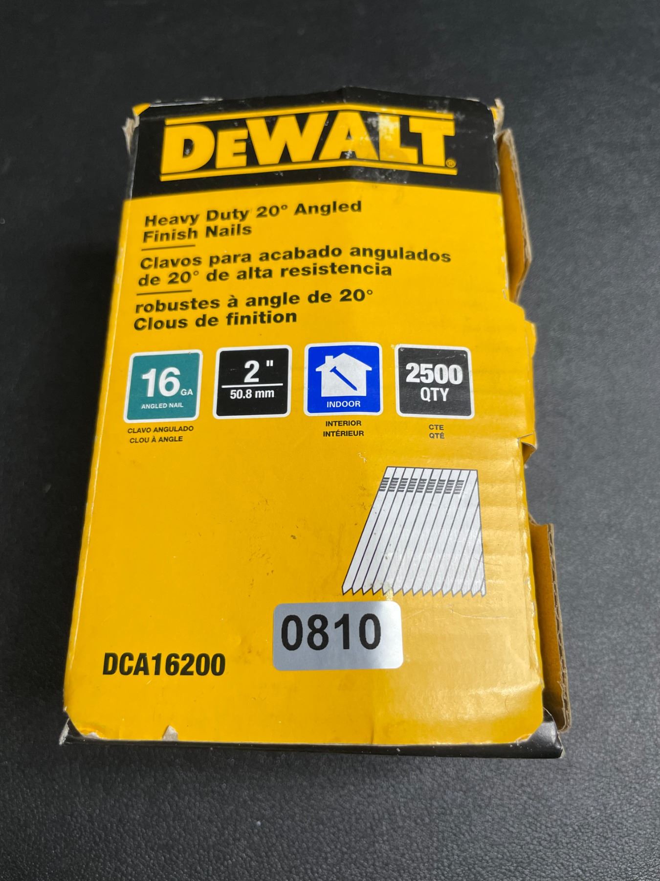 1 Box of DeWalt Heavy-Duty 20-Degree Angled Finishing Nails (2500 Count) - New