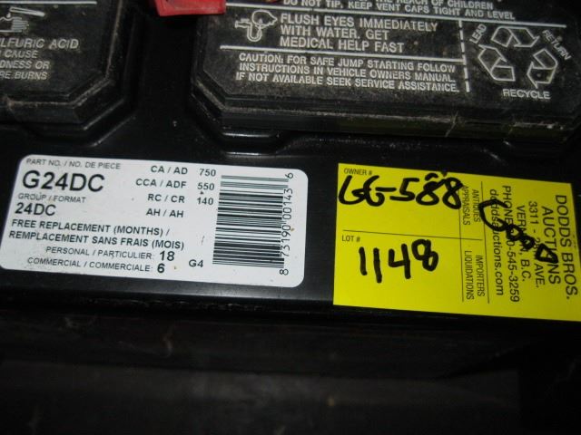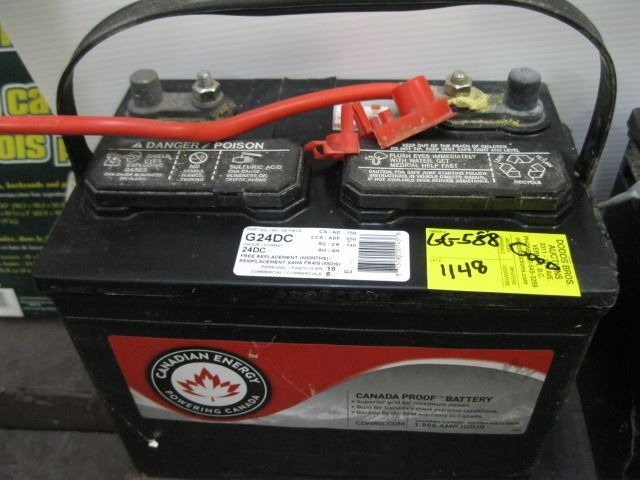 1 CANADIAN PROOF BATTERY, TESTED GOOD, AND 1 MOTOMASTER, NO GOOD
