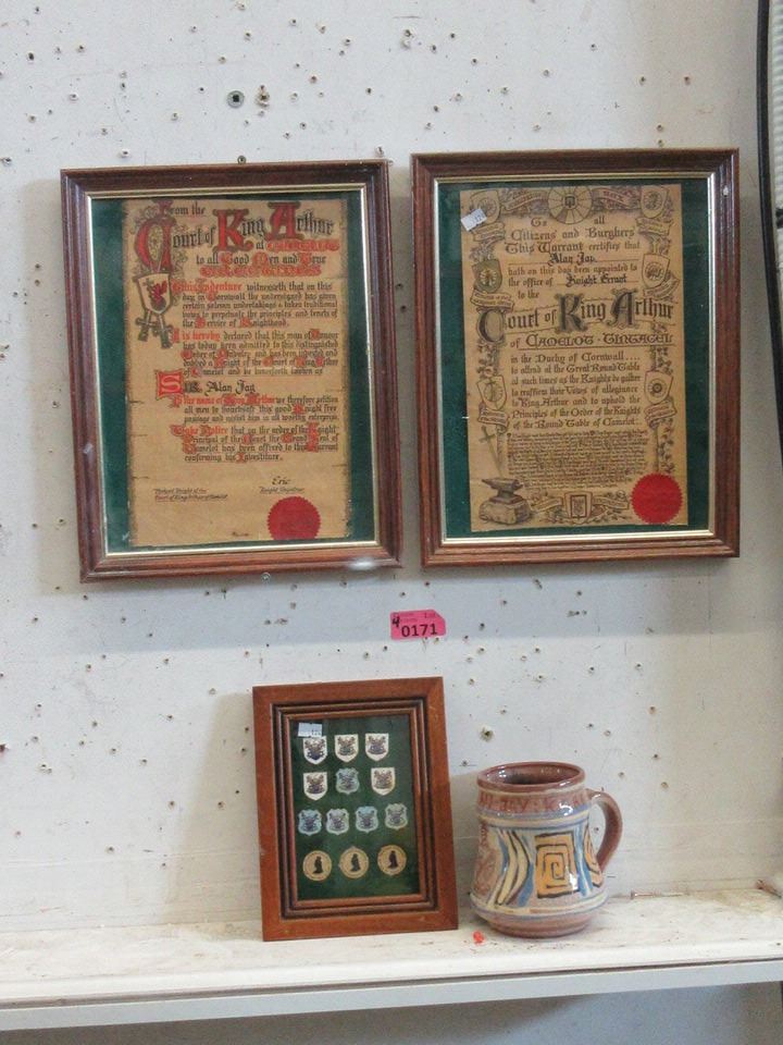 1 Ceramic Mug & 3 Framed King Arthur Mementos