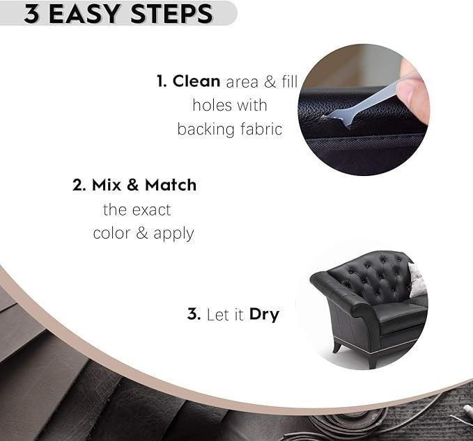 - Leather Repair Kit for Couches, Vinyl Repair Kit for Furniture, Car Seats, Sofa, Jacket, Purse, Belt, Shoes, Boat - Scratch Filler Leather Care DIY Leather Fix Kit Repairs Tears Burn Holes - Black