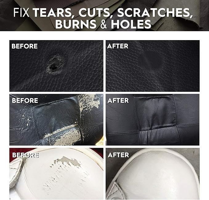 - Leather Repair Kit for Couches, Vinyl Repair Kit for Furniture, Car Seats, Sofa, Jacket, Purse, Belt, Shoes, Boat - Scratch Filler Leather Care DIY Leather Fix Kit Repairs Tears Burn Holes - Black