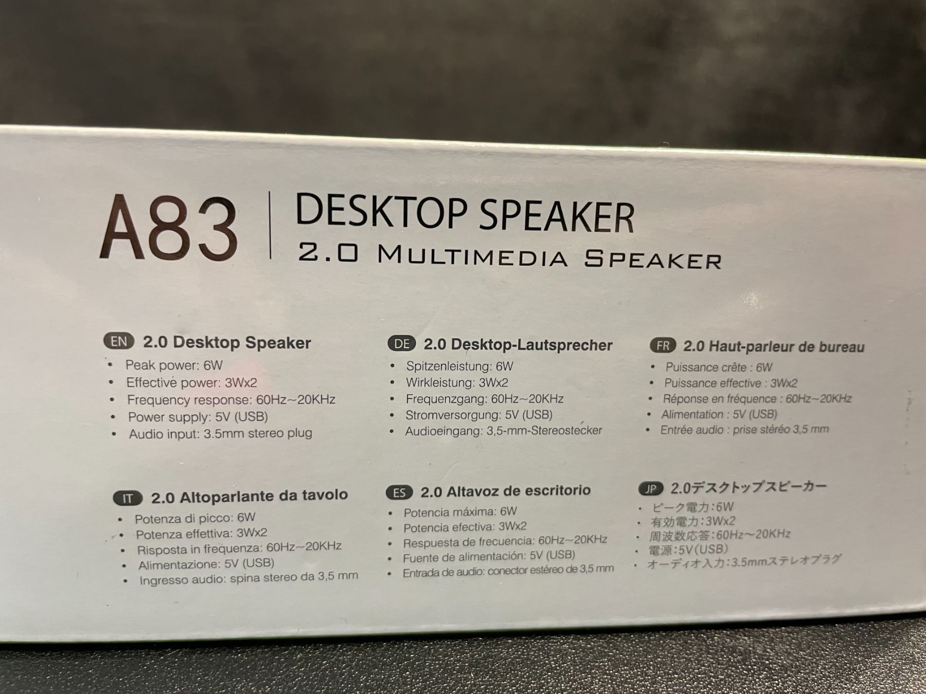 1 Desktop Speaker/Wired Soundbar 2.0 Multimedia Speaker (A83) USB-Connection - New in Box