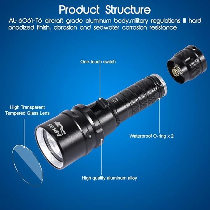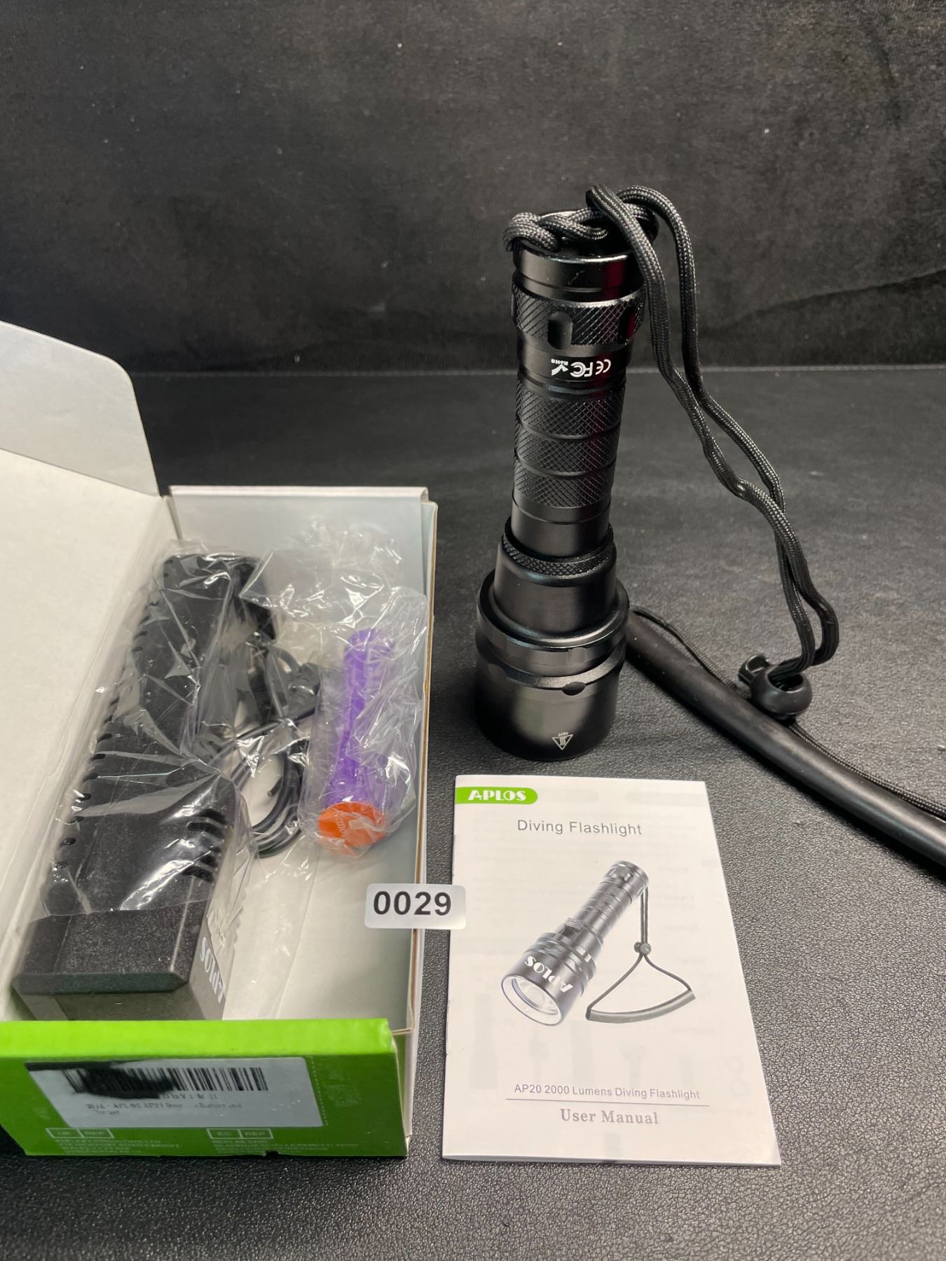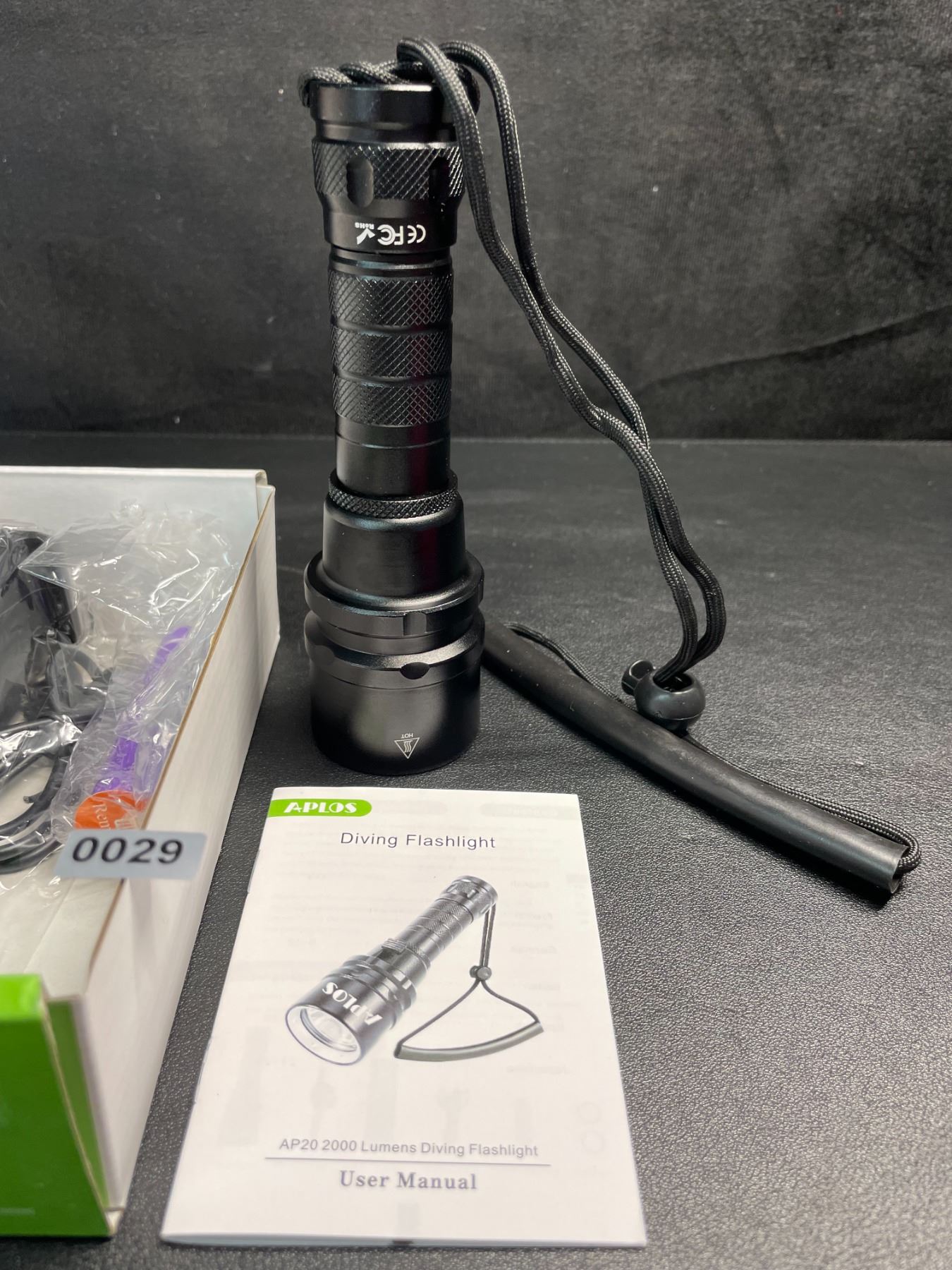 - APLOS AP20 Dive Light, 2000 Lumens Scuba Diving Flashlight, IPX8 Waterproof Underwater Torch with Rechargeable Battery and Charger