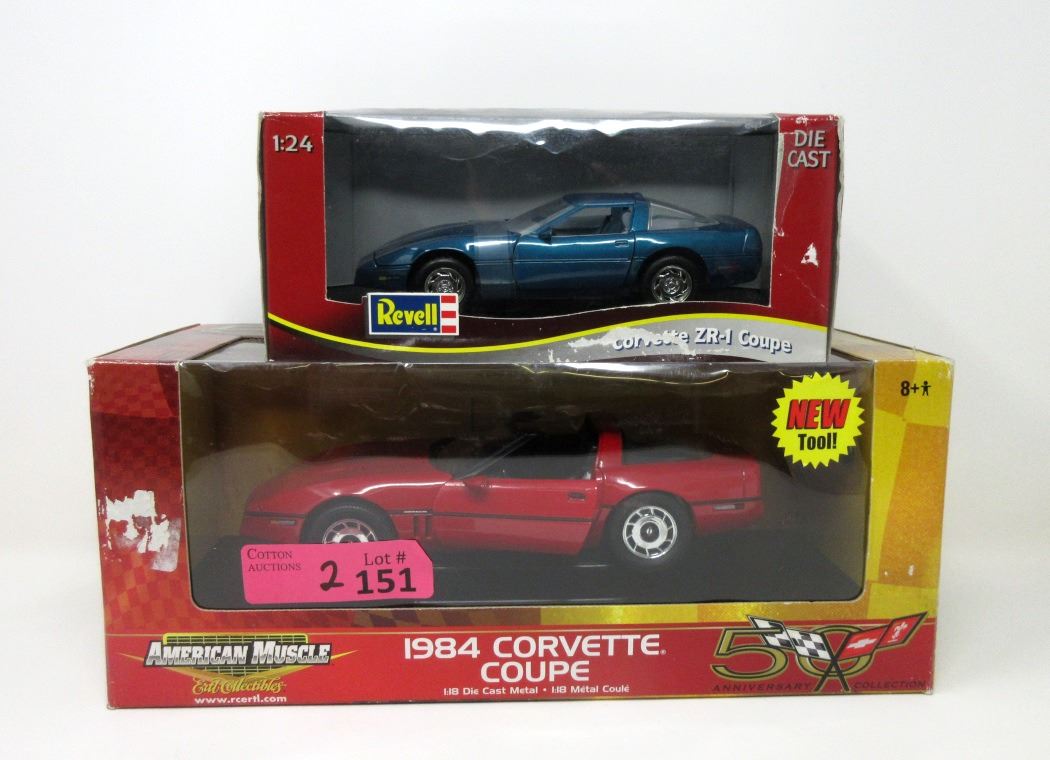 Ertl 1:18 Scale 1984 Chevy Coupe & 1:24 Scale Revell Corvette ZR-1 Coupe. Mint in original boxes.