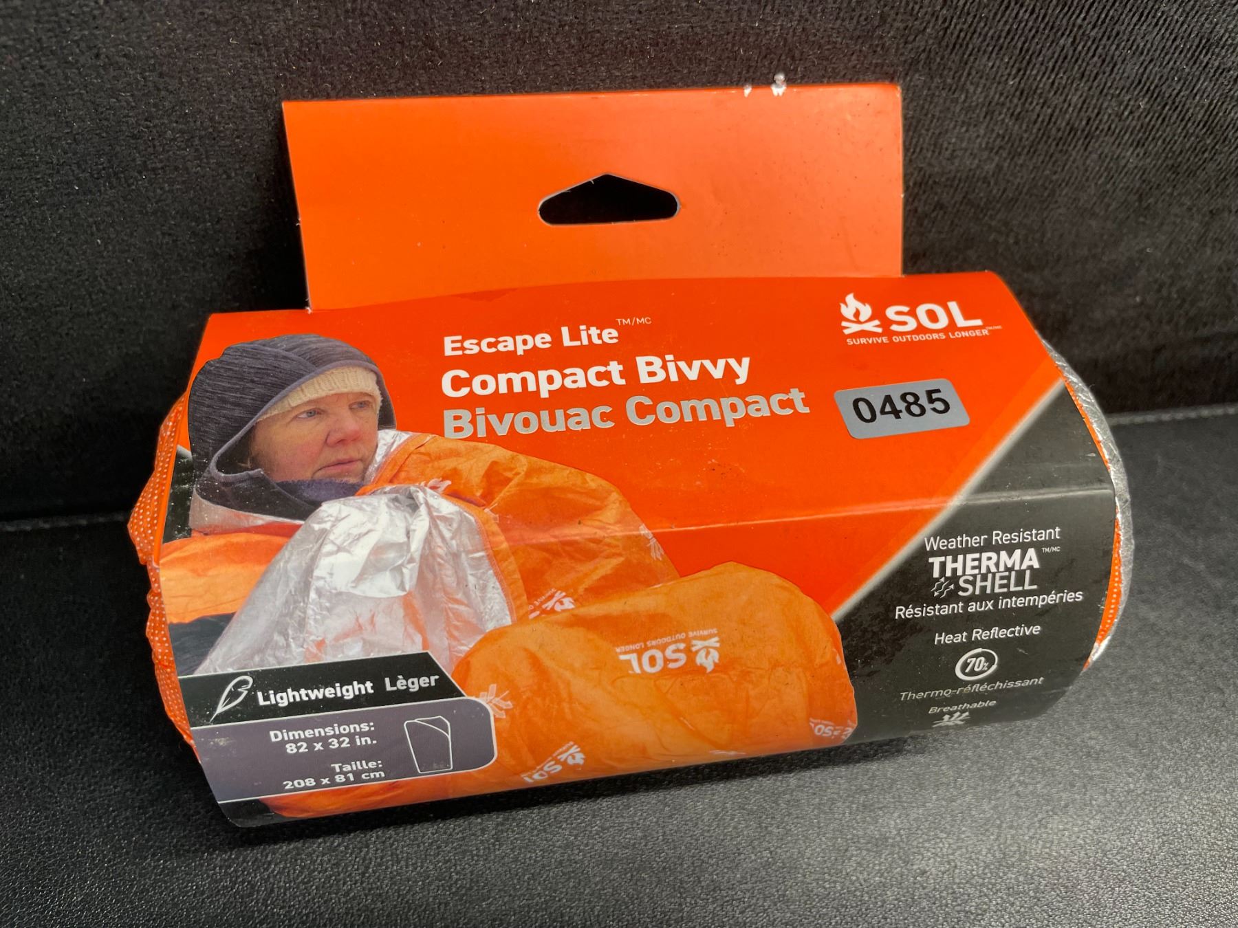 - At only 5.5 oz, the Escape Lite Bivvy offers peace of mind and incredible versatility in a small package. Utilizing the innovative SOL Escape material, the Escape Lite is highly wind and water resistant, highly abrasion and tear resistant, heat-reflective and breathable. Use the Escape Lite™ as a performance-enhancing sleeping bag liner, an ultra-lightweight summer bag or as a fail-safe emergency bivvy.