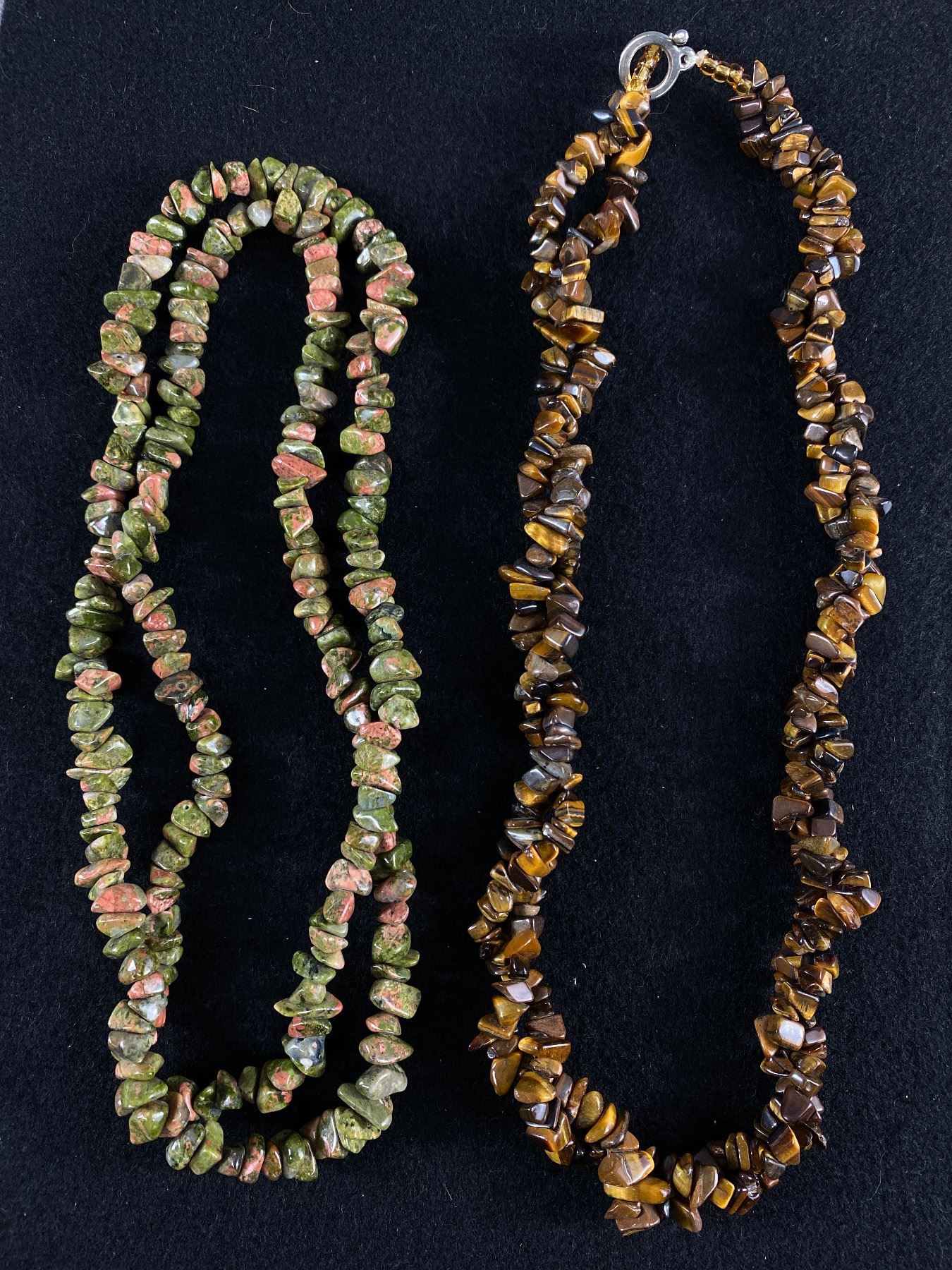 1 Extra Length & 1 Double Strand Twisted Natural Jasper Stones Necklaces