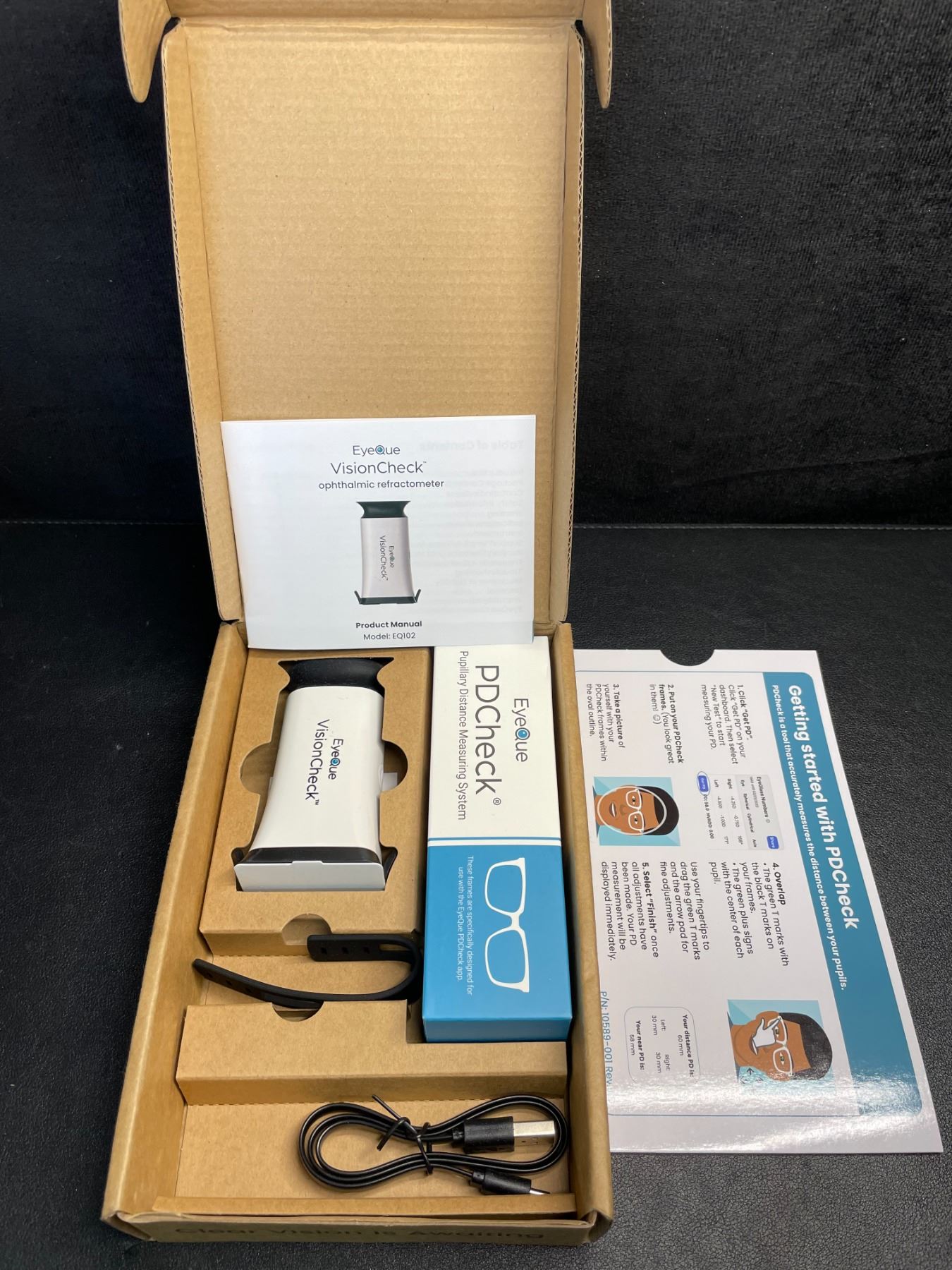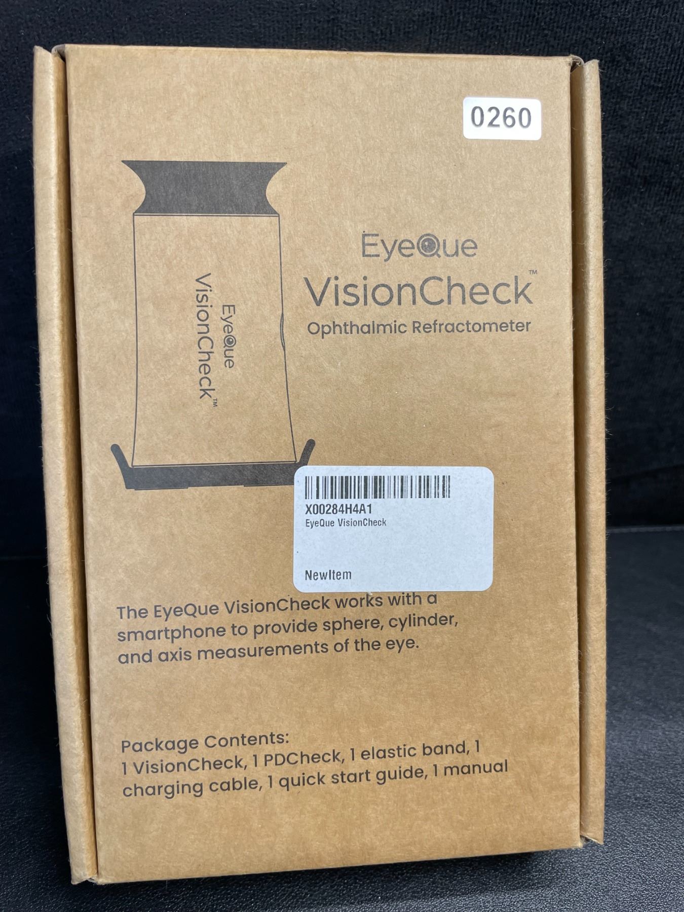 - The EyeQue VisionCheck works with a smartphone to provide sphere, cylinder, and axis measurements of the eye