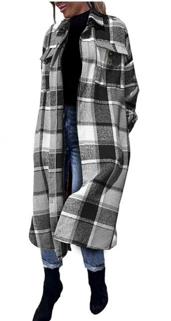 - fantaslook flannel shirts for women; button up plaid shirt/long pocketed shacket jacket coat