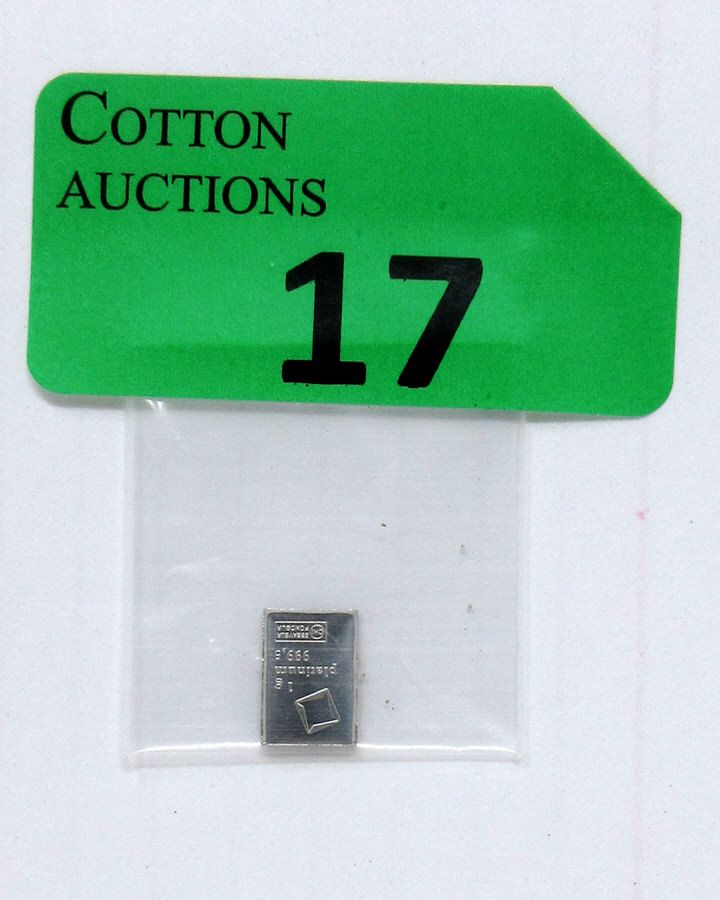 1 Gram .9995 Fine Platinum Valcambi Suisse Bar