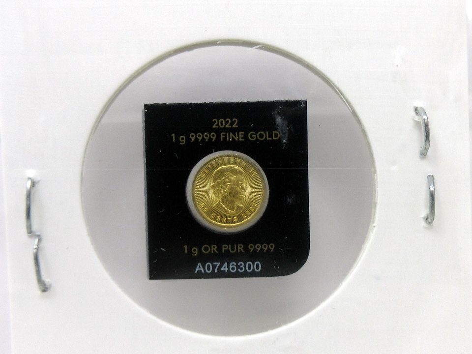 1 Gram .9999 Fine Gold 2022 Canada Maple Leaf Coin in Assay Card