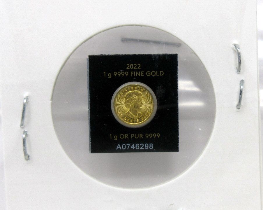1 Gram .9999 Fine Gold 2022 Canada Maple Leaf Coin in Assay Card