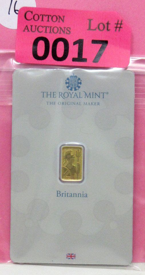 1 Gram .9999 Fine Gold Britannia Serial Numbered Bar