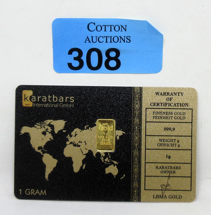 1 Gram .9999 Fine Gold Nadir Mint Certified Bar