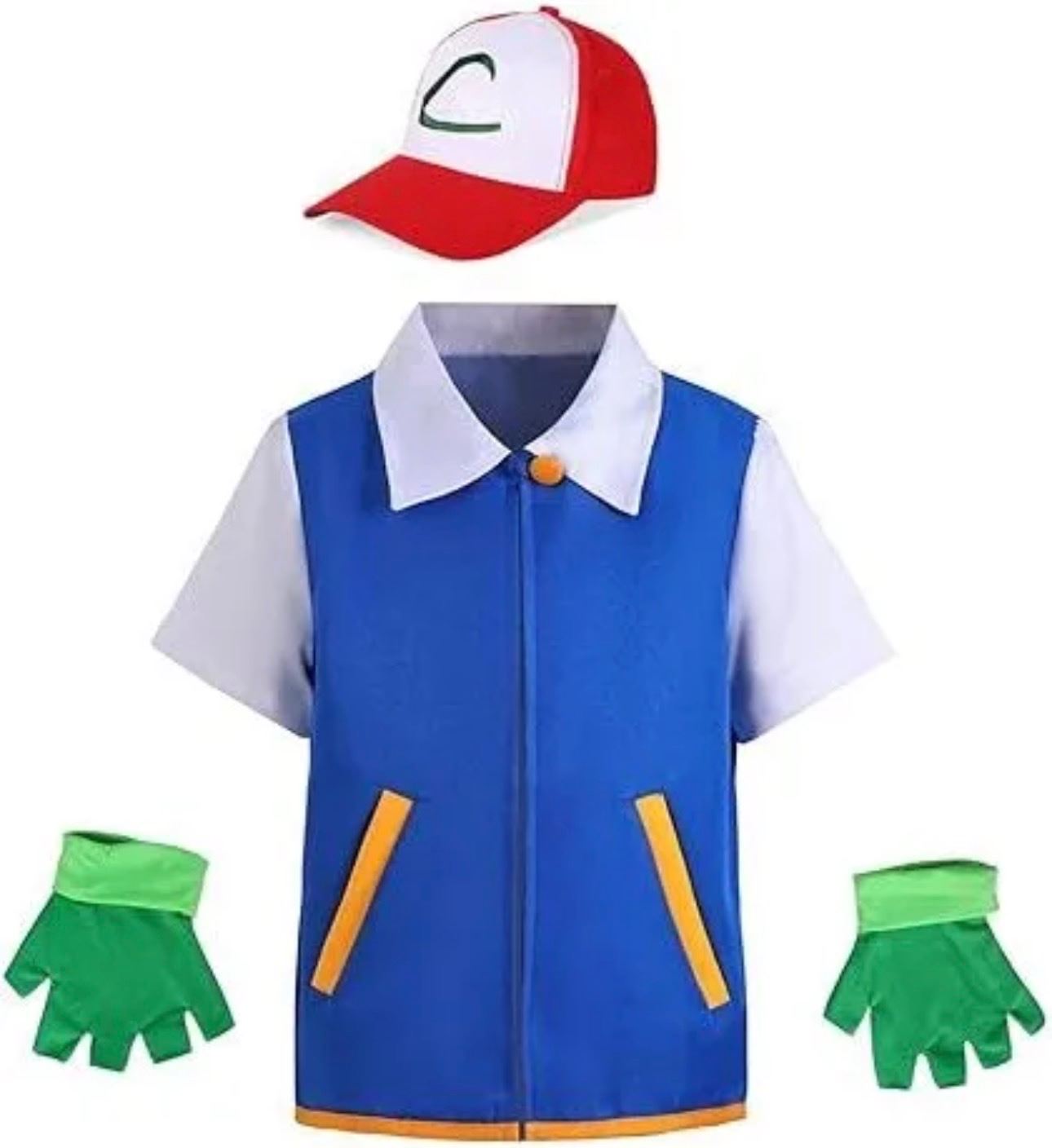 1 Halloween/Cosplay Pokemon Ask Ketchum Outfit with Vest/Hat/Gloves 3XL - New
