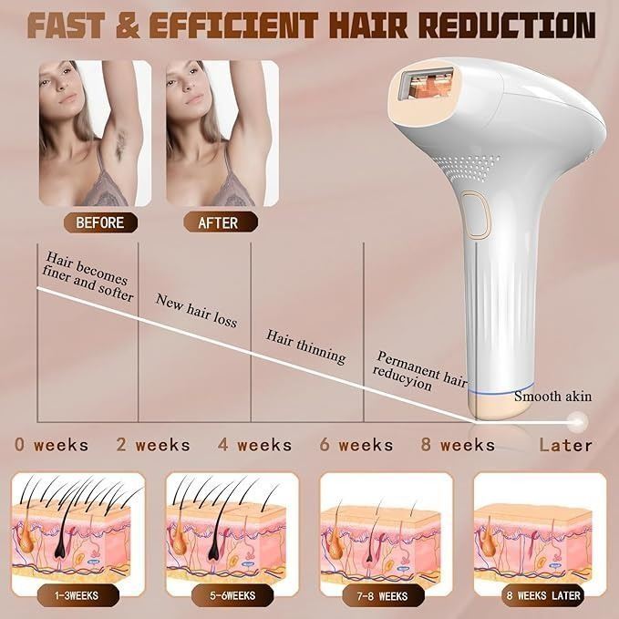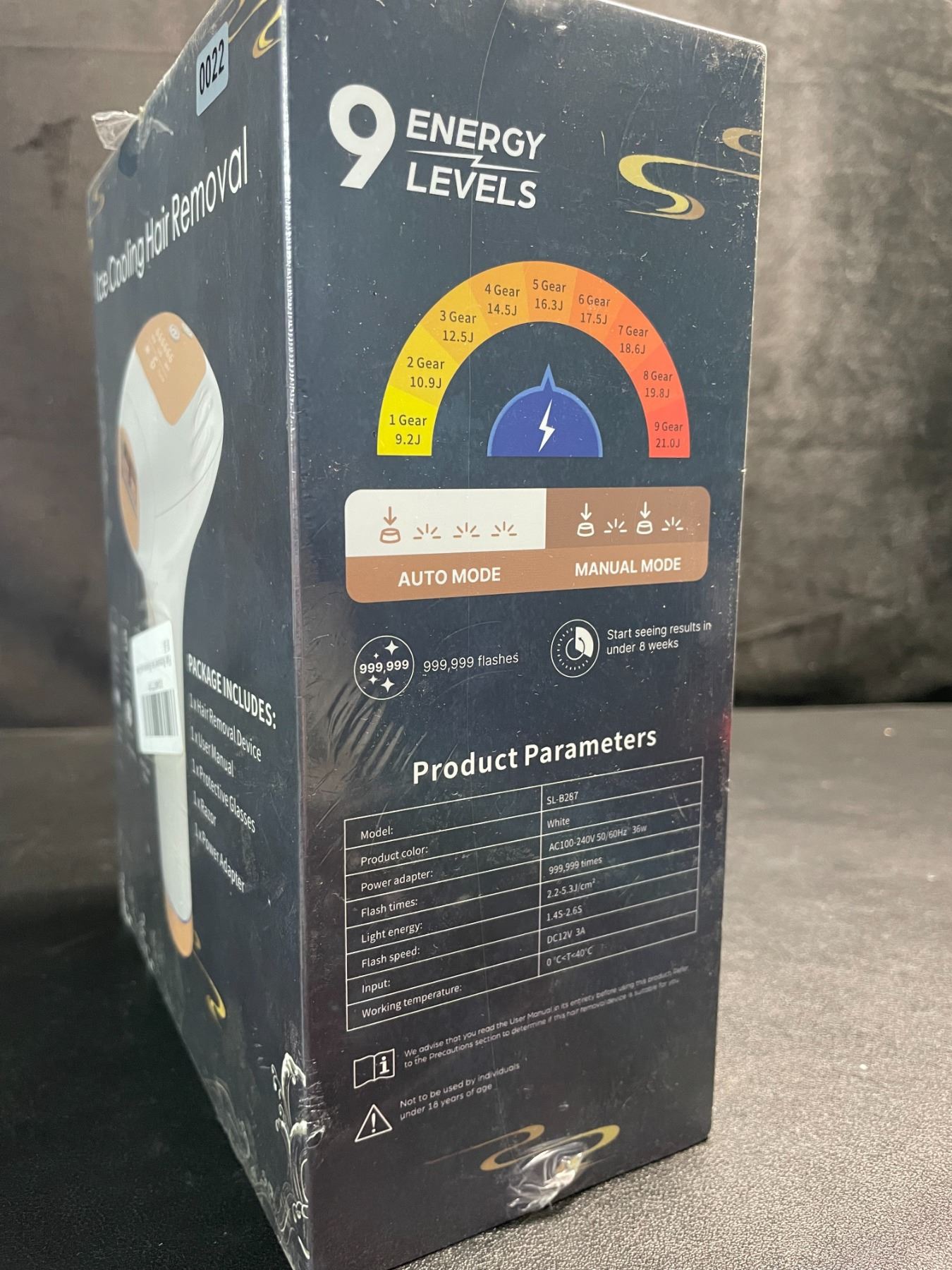 - 999,999 flashes; uses intense flashes of light to target hair at the root
