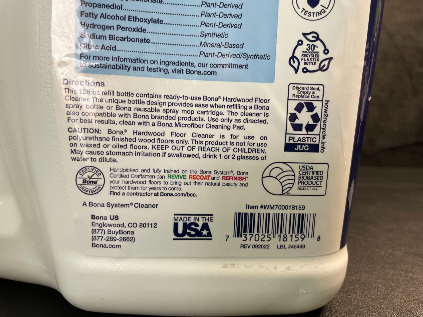 1 Jug of BONA Hardwood Floor Cleaner Refill (3.78L Jug) - New