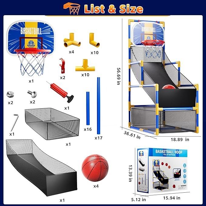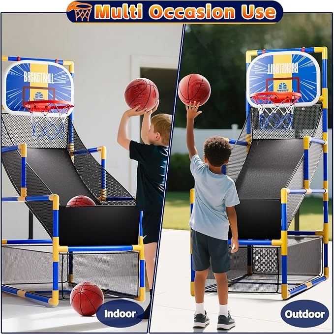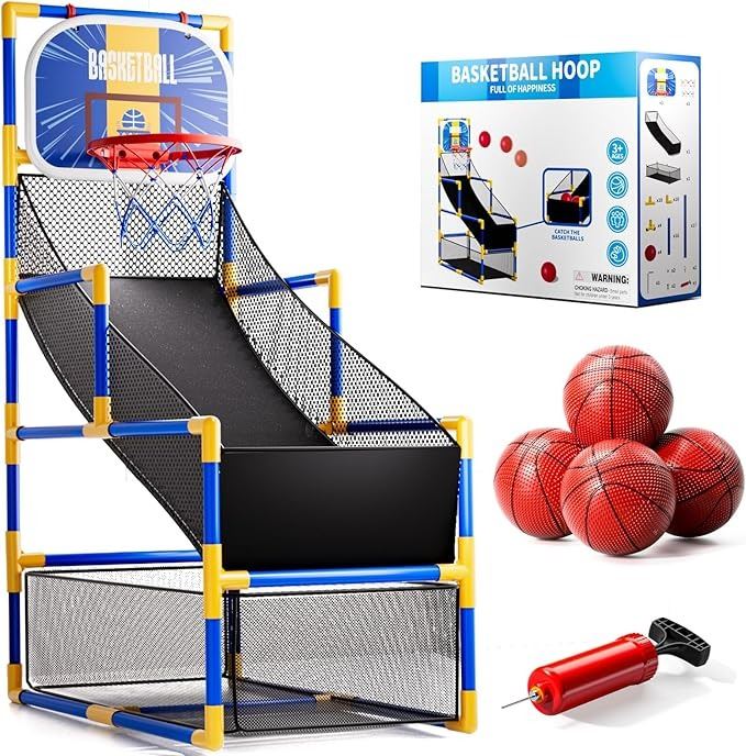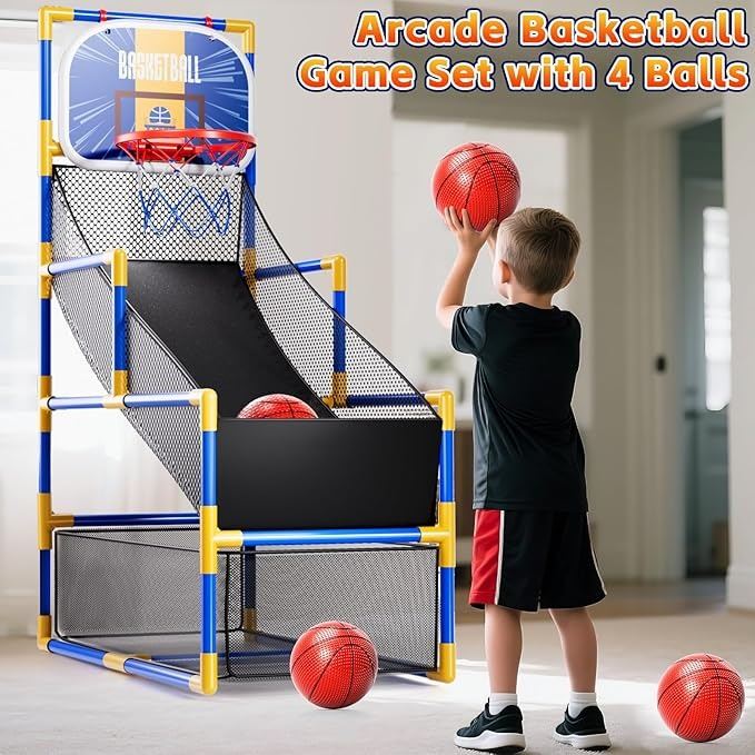 - Kids Arcade Basketball Game Set with 4 Balls and Air Pump, Indoor Outdoor Basketball Hoop Sports Toy Gifts for Kids 6-8 Years Old, Party Games for Boys Girls