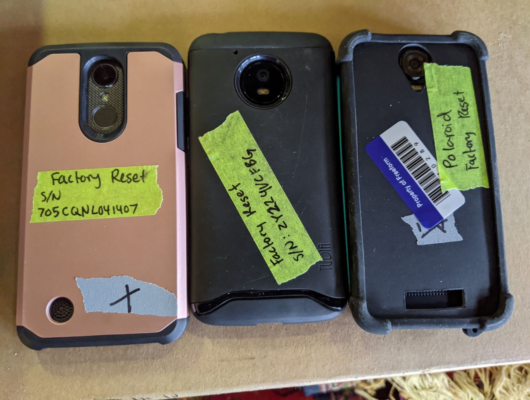 All phones are factory reset and data is wiped. Ready to use