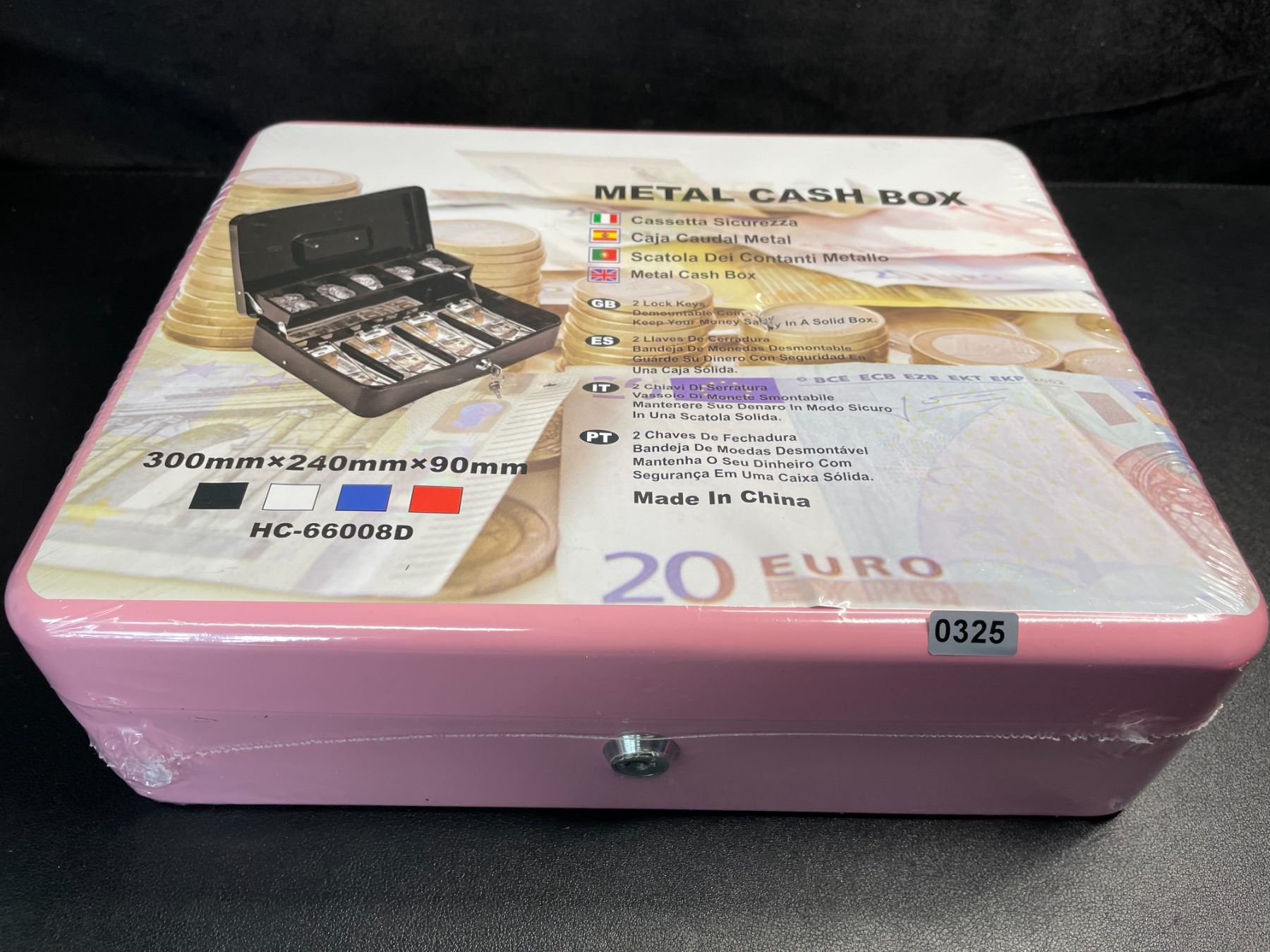 1 Metal Cash Box/Money Lock Box with Key - Pink - Portable Money Box - New Sealed