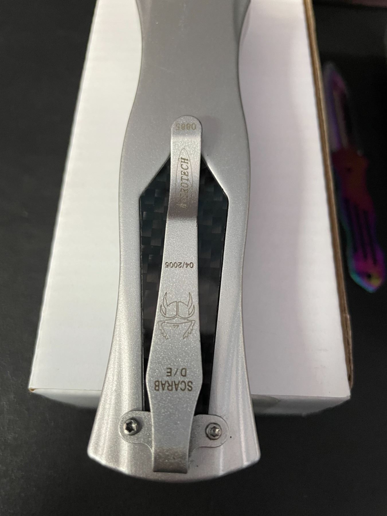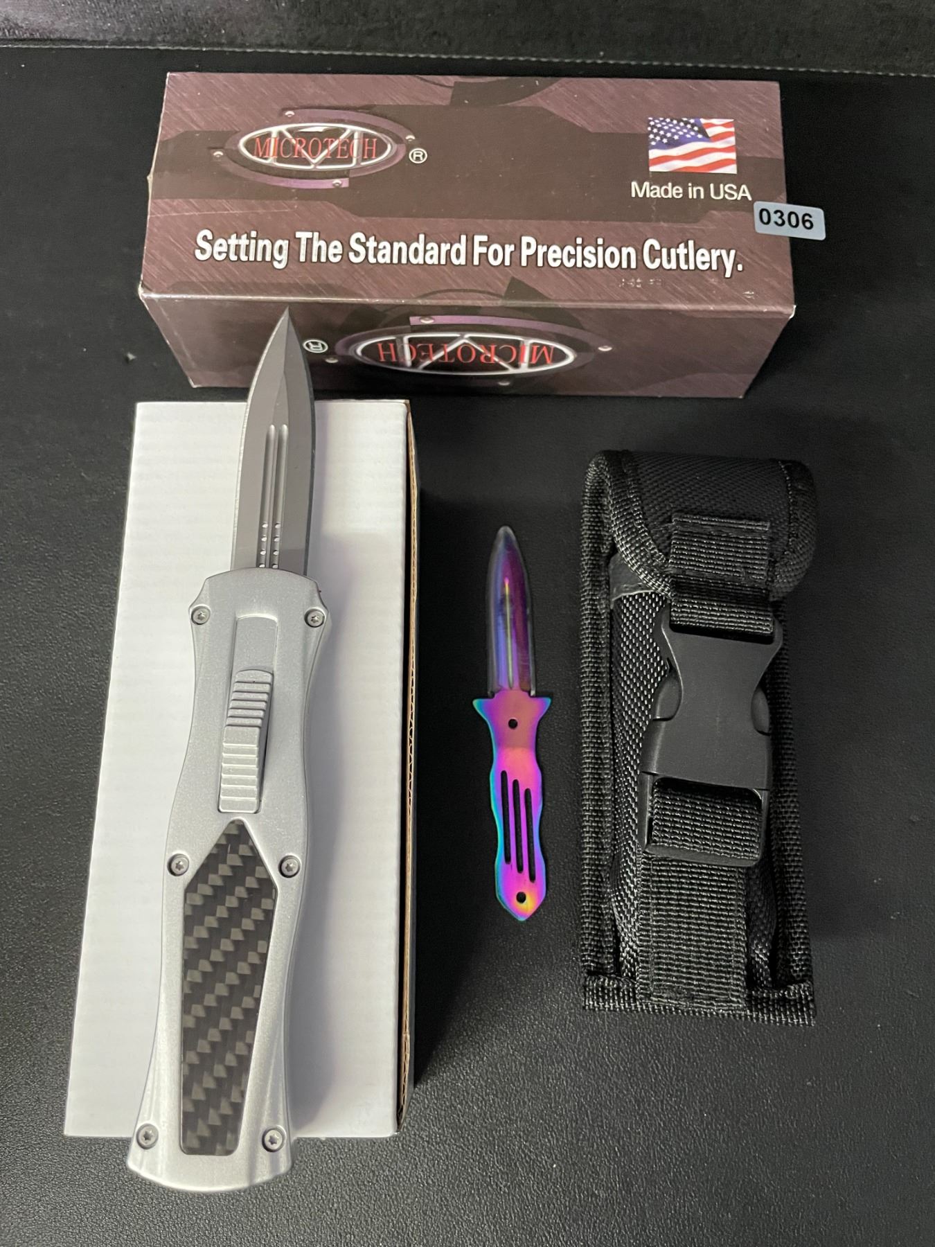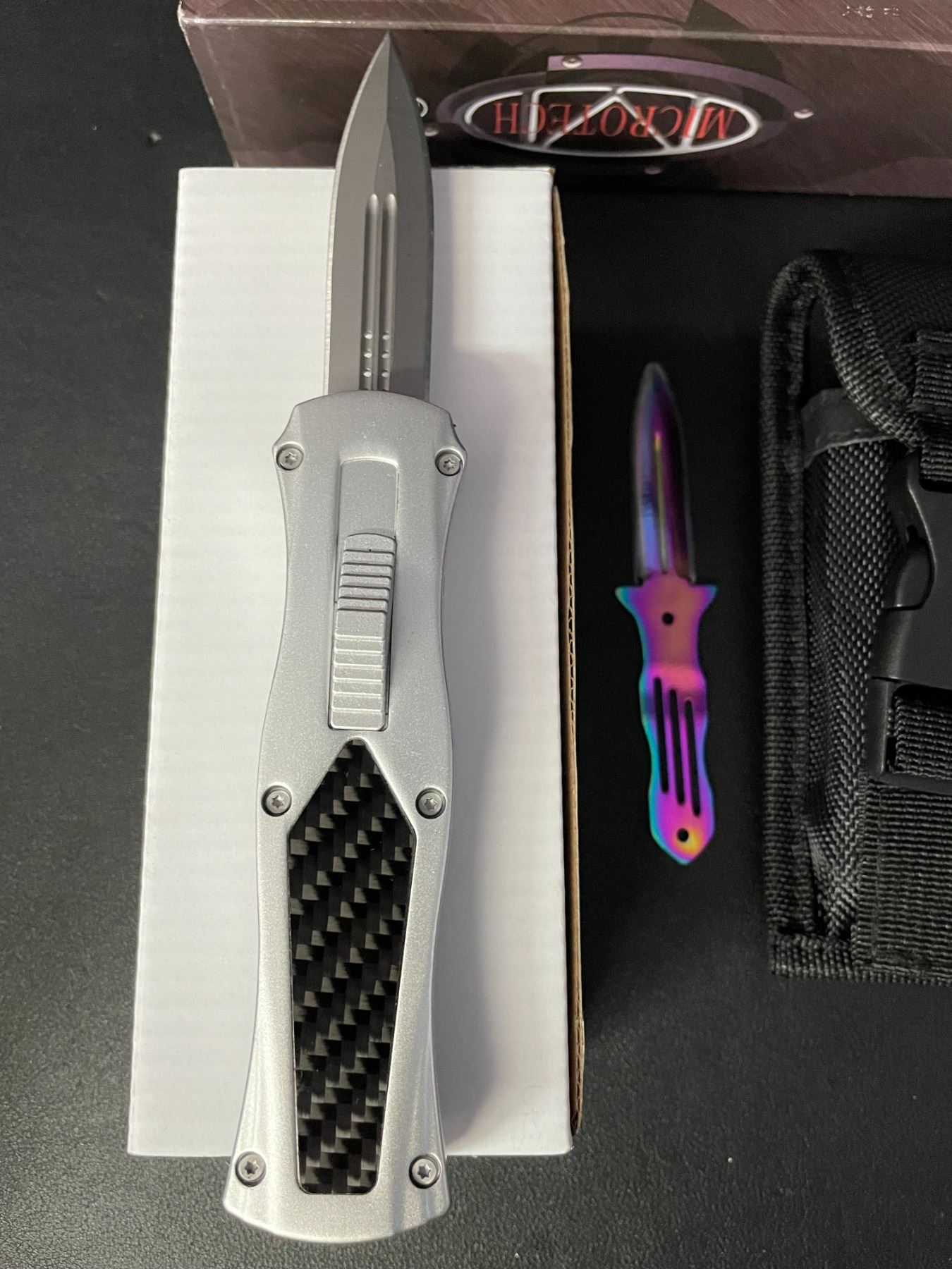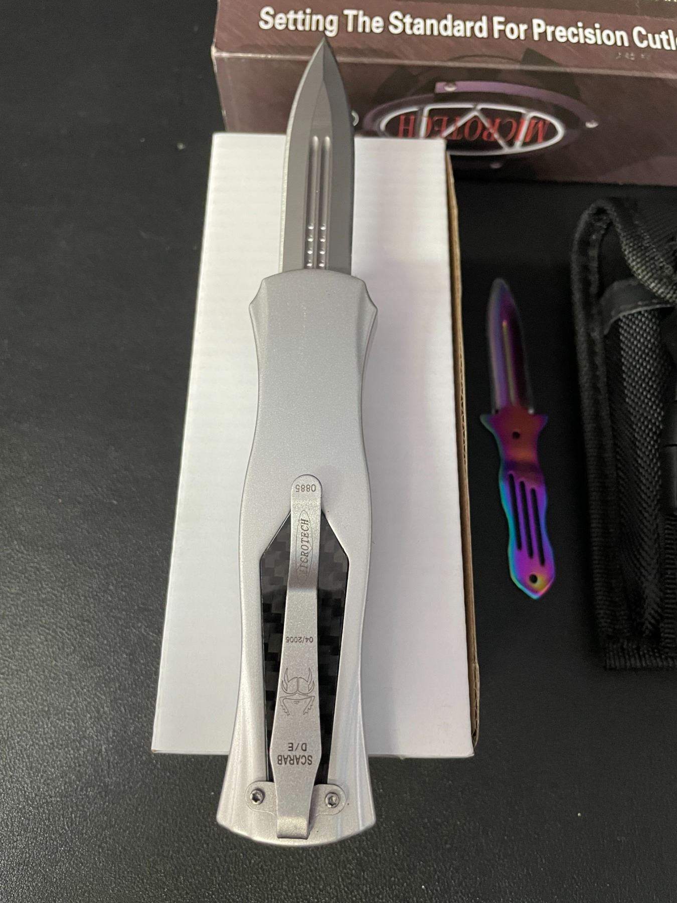 - Microtech Scarab Tactical OTF (out the front) automatic pop-out knife
