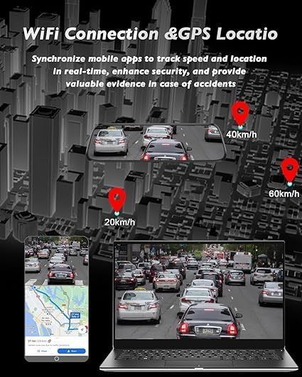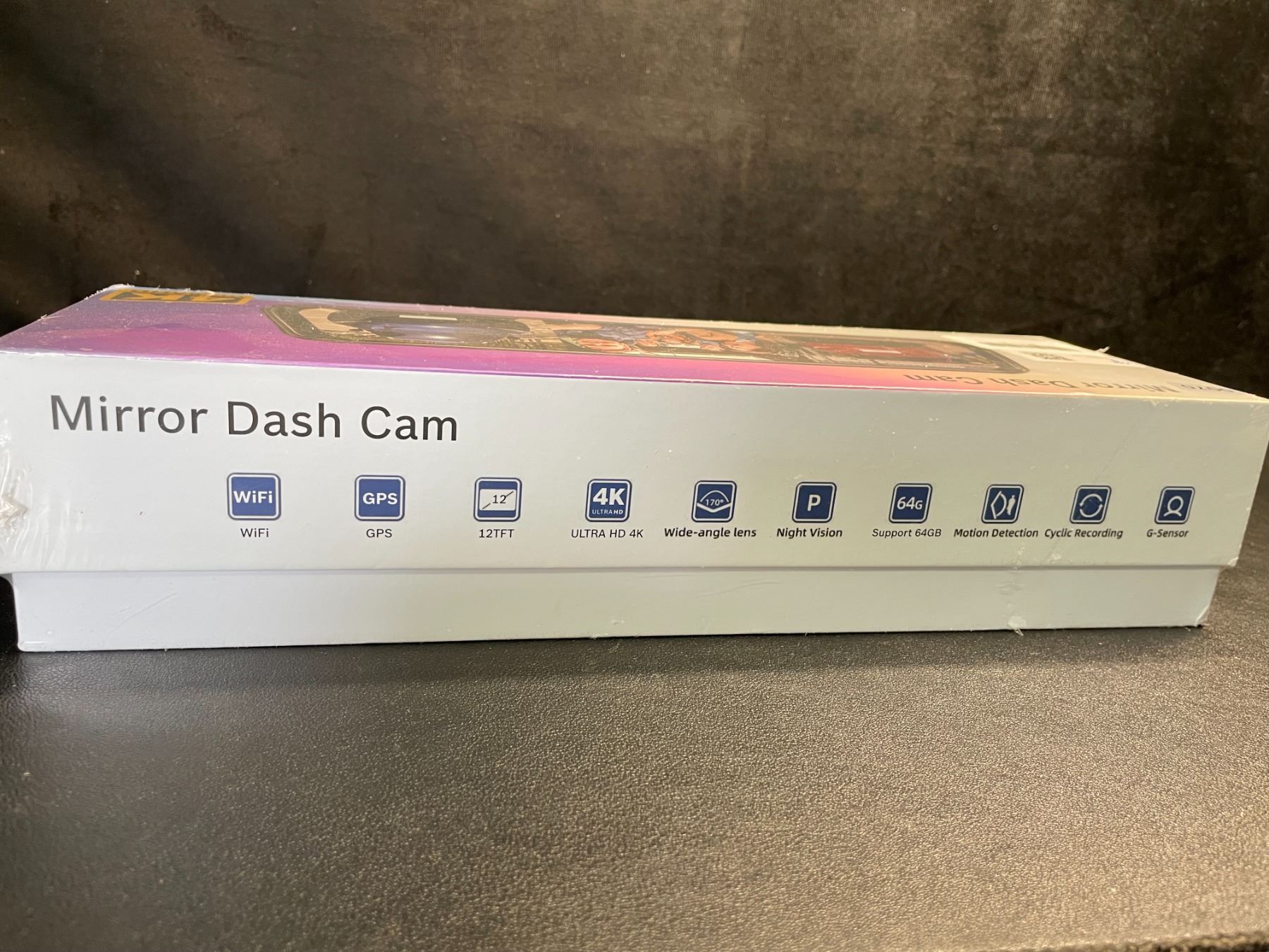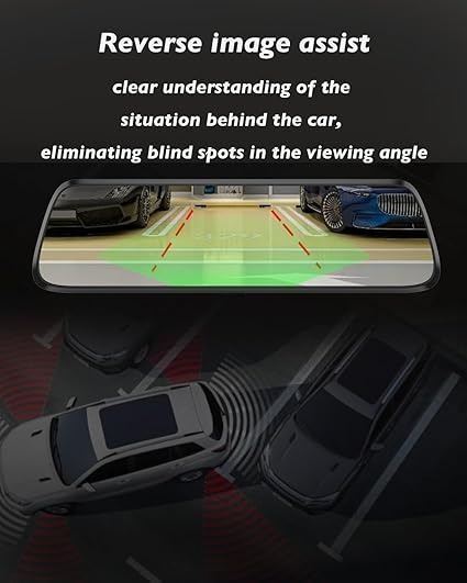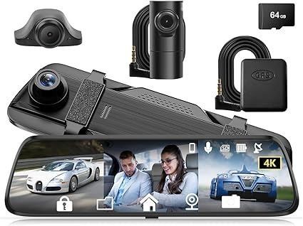 - doge&vollar 12" rear view mirror camera, 4k dash cam front and rear, intelligent full touch screen with hardwire kit, free 64gb card included & gps