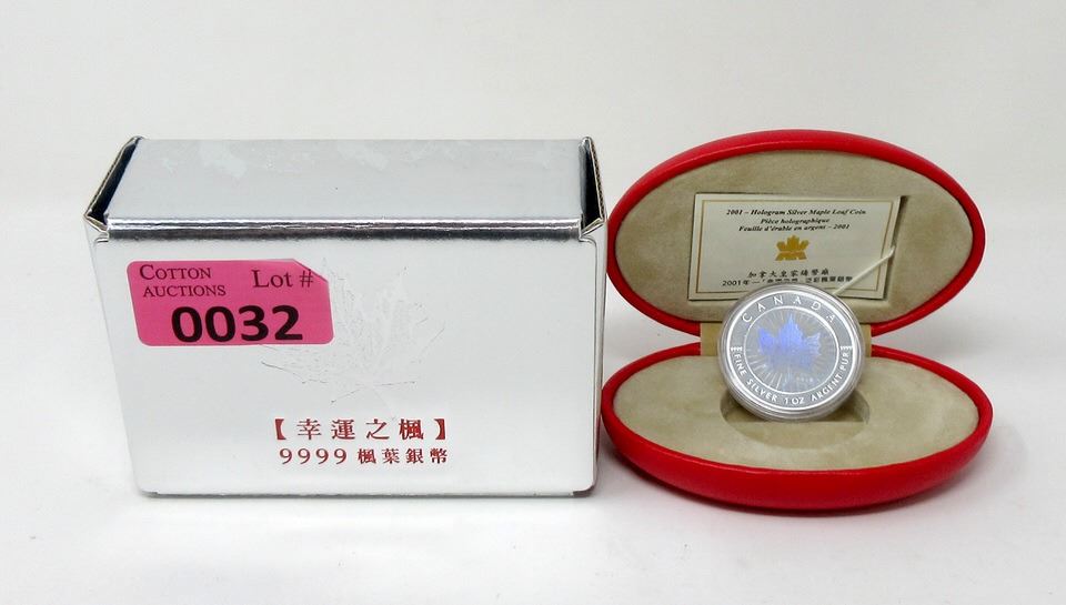 "Hologram Silver Maple Leaf Coin". In red oval RCM box and silver coloured box. With RCM certificate. Tax exempt