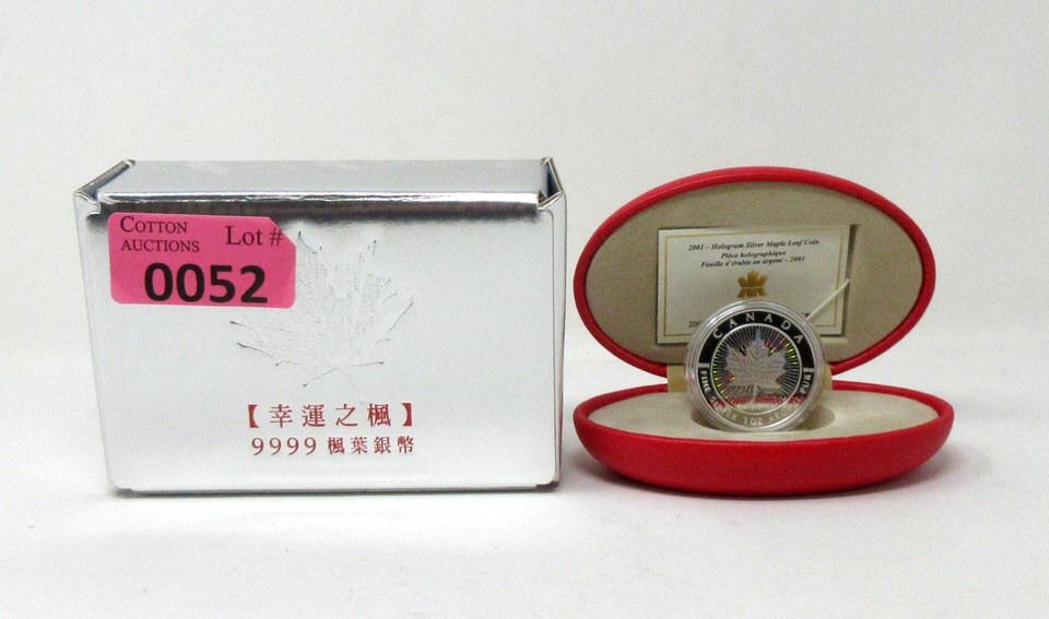 "Hologram Silver Maple Leaf Coin". In red oval RCM box and silver coloured box. With RCM certificate. Tax exempt