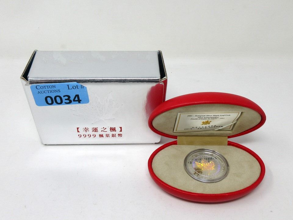 "Hologram Silver Maple Leaf Coin". In red oval RCM box and silver coloured box. With RCM certificate. Tax exempt
