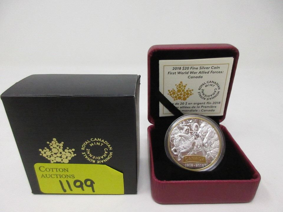 "First World War Allied Forces: Canada". 31.39 Grams. Mintage: 5,000. In original mint box with certificate. Tax exempt.