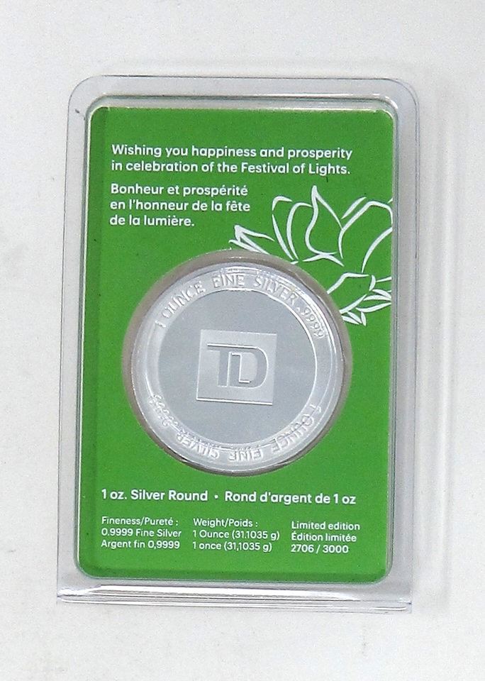 TD Bank. Peacock motif. Colourized. 2-sided design. Mintage 3,000. In assay card. Tax exempt