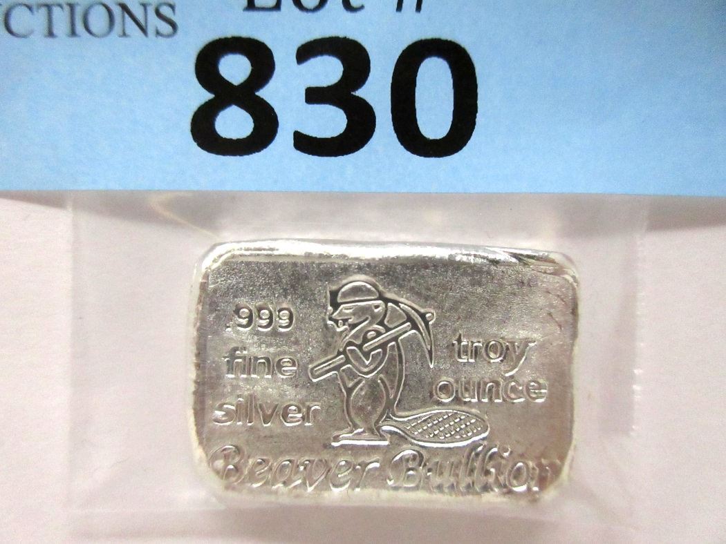 1 Oz. .999 Fine Silver Beaver Bullion Bar