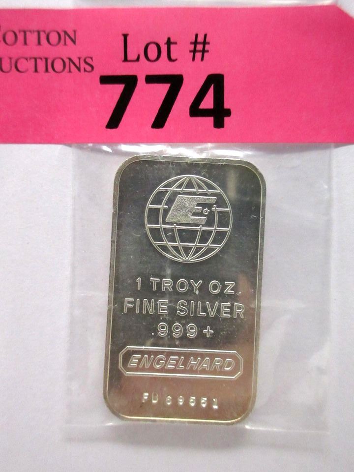 1 Oz. .999 Fine Silver Engelhard Bullion Bar