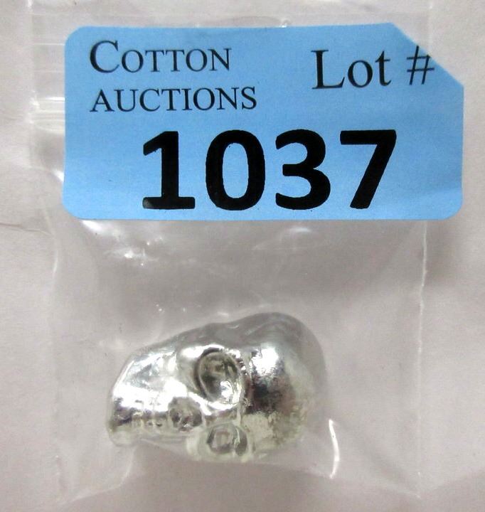 1 Oz. .999 Fine Tin Bullion 2D Skull Bar