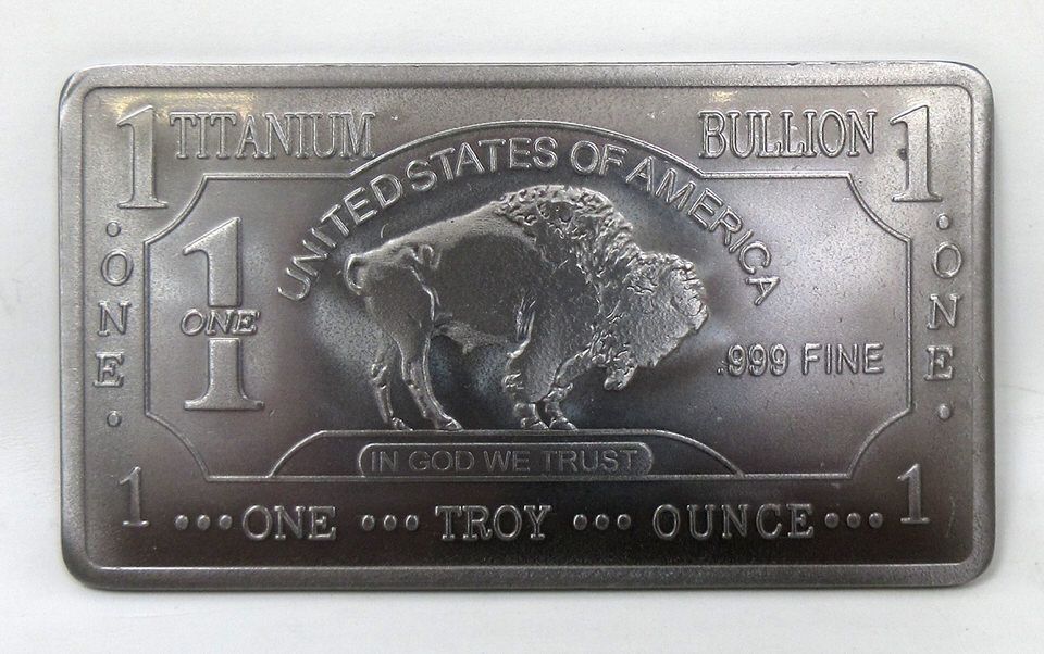 1 Oz .999 Fine Titanium USA Buffalo Bar