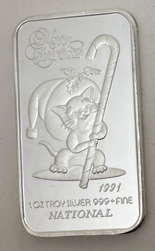 1 Oz .999+ Silver 1991 Merry Christmas Bar