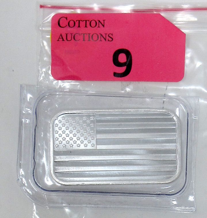 1 Oz .999 Silver 2-Sided American Flag Bar