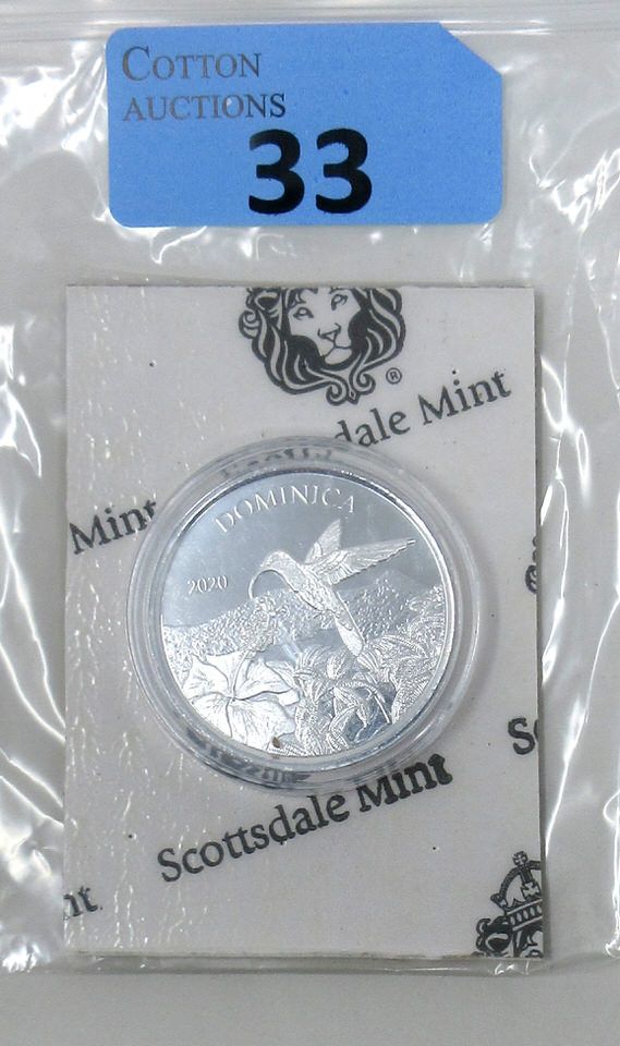 1 Oz .999 Silver 2020 Dominica Coin on Backer Board