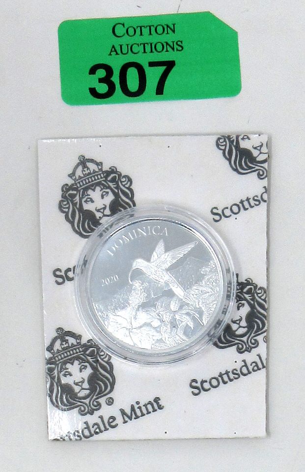 1 Oz .999 Silver 2020 Dominica Coin on Backer Board