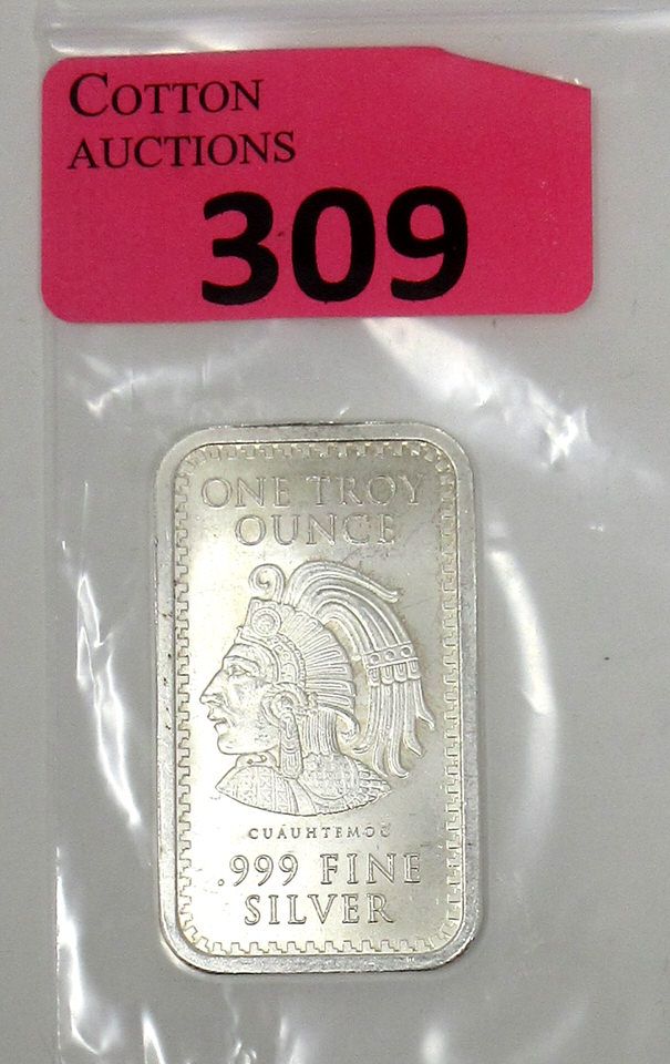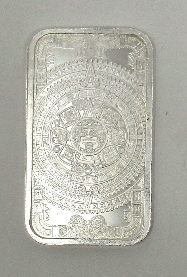 1 Oz .999 Silver Aztec Motif 2-Sided Art Bar