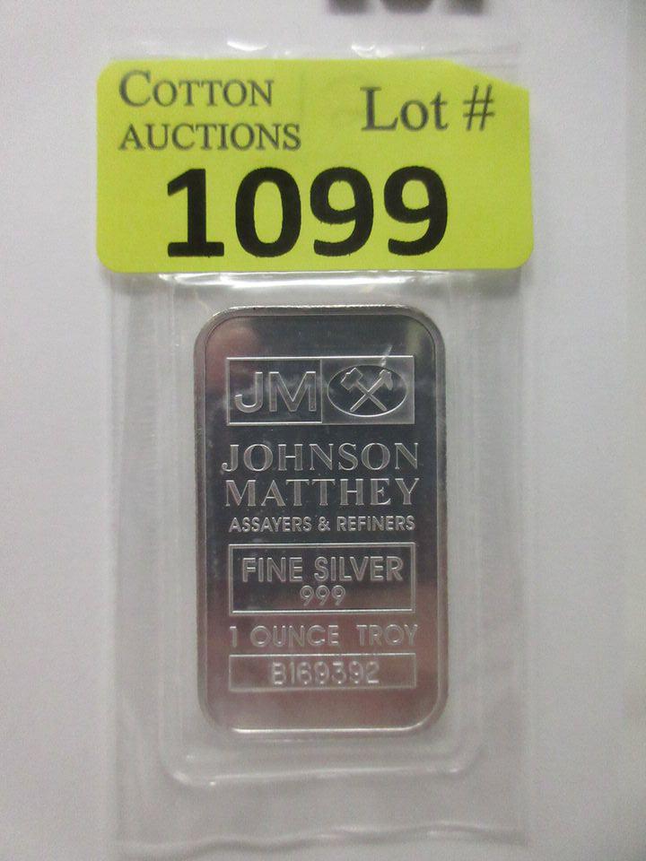 1 Oz .999 Silver Johnson Matthey Serial Numbered Bar